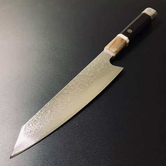 この度は閲覧ありがとうございます。67層ダマスカス切付型ペティナイフでございます。刃渡りは210mmで柄には黒檀白水牛柄を使用しております。切れ味抜群、長切れ、お手入れ簡単な包丁となっております
