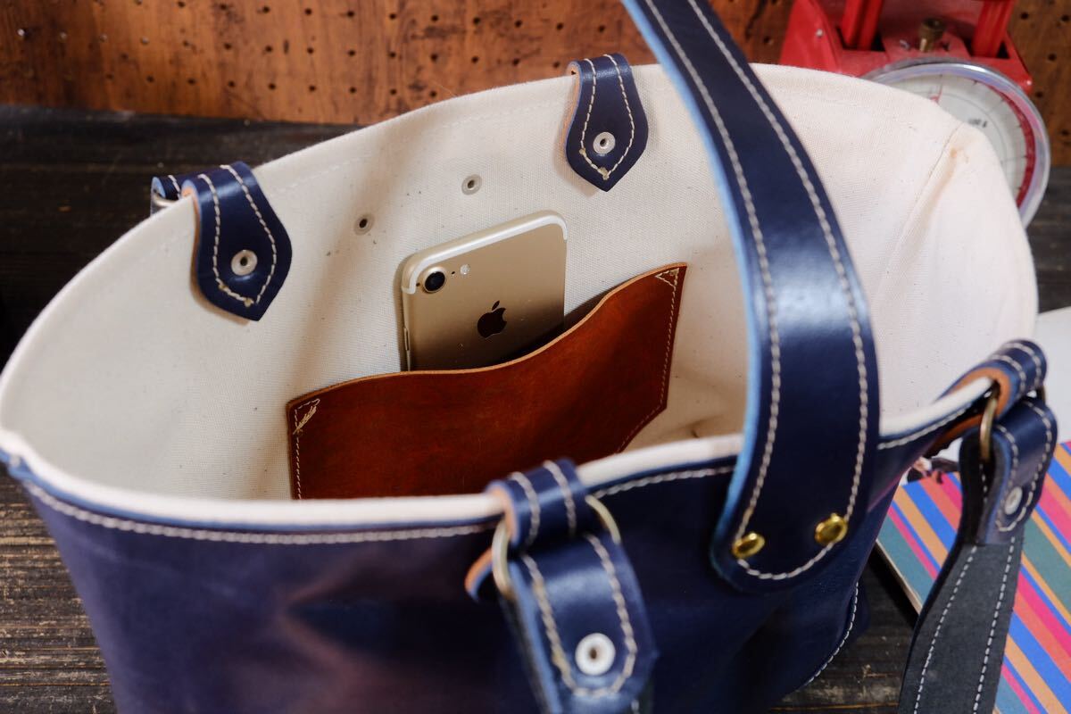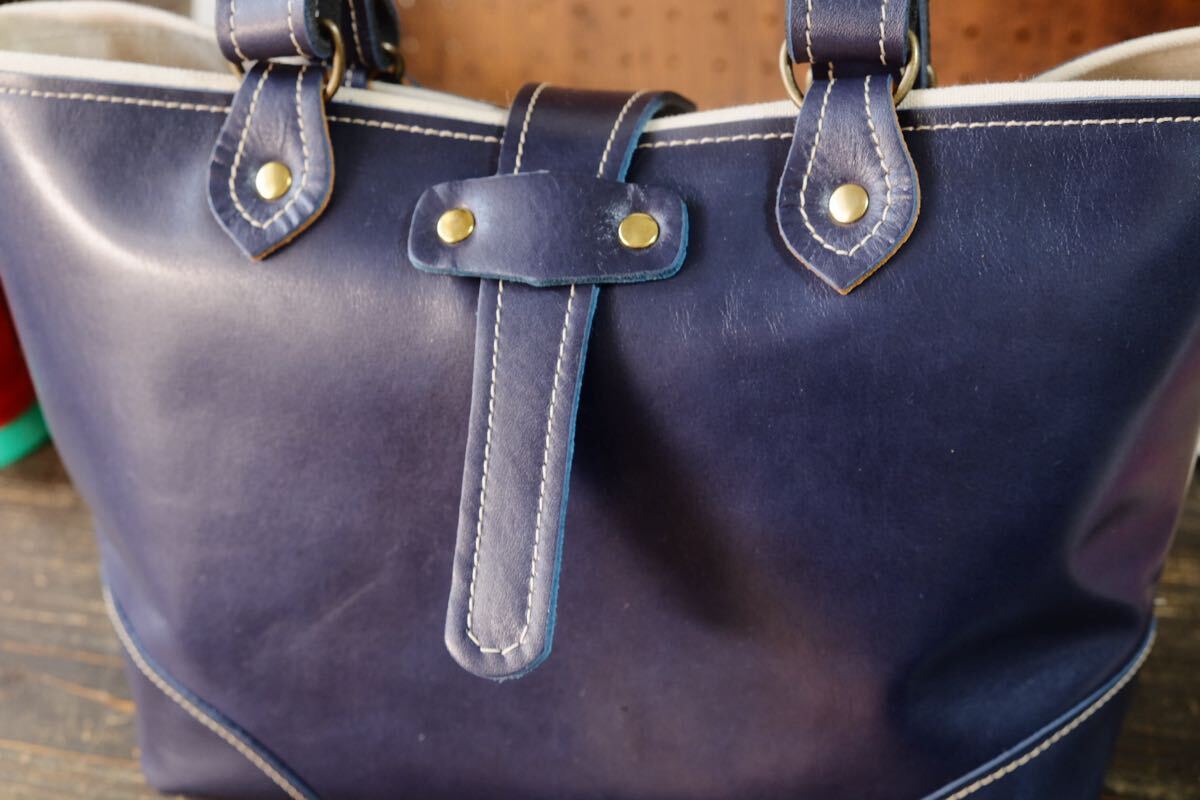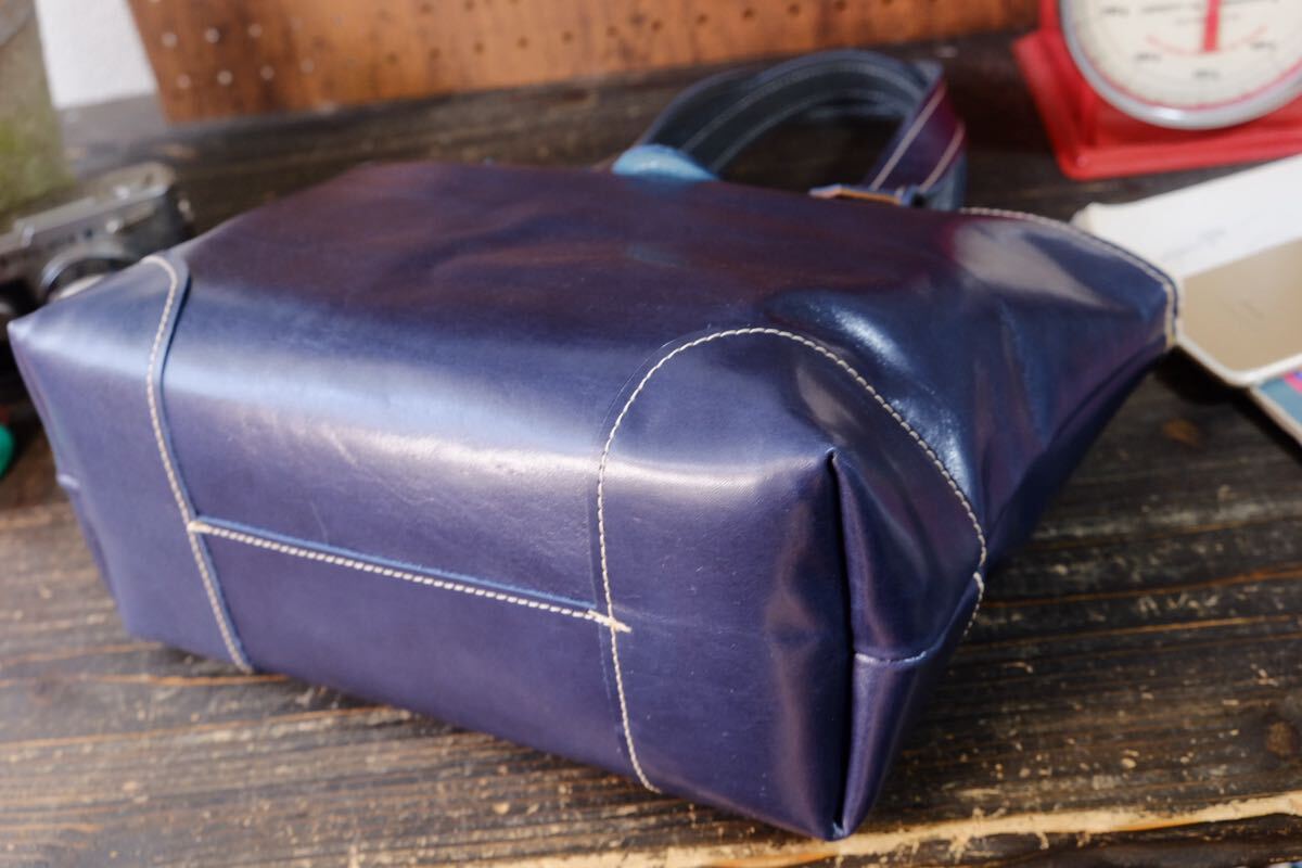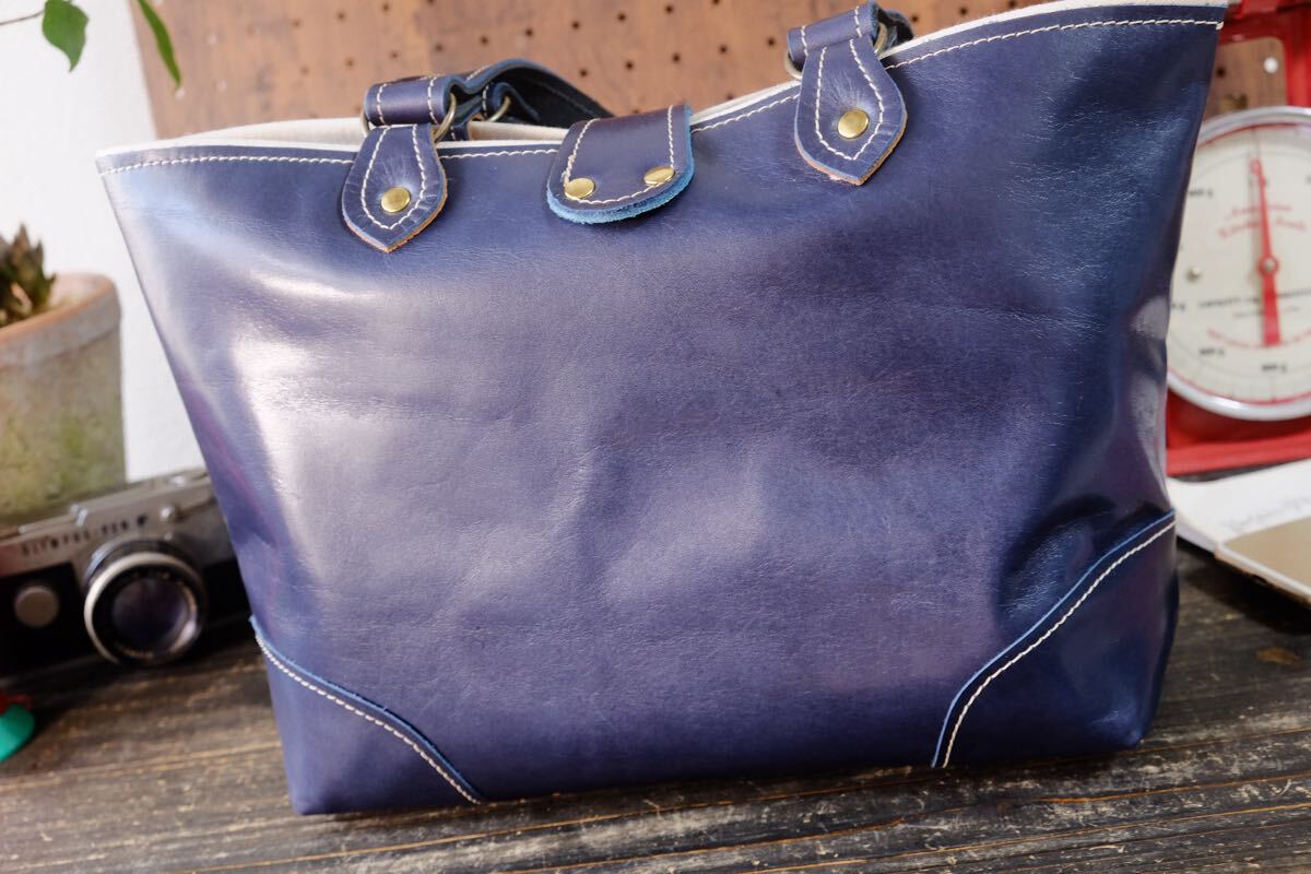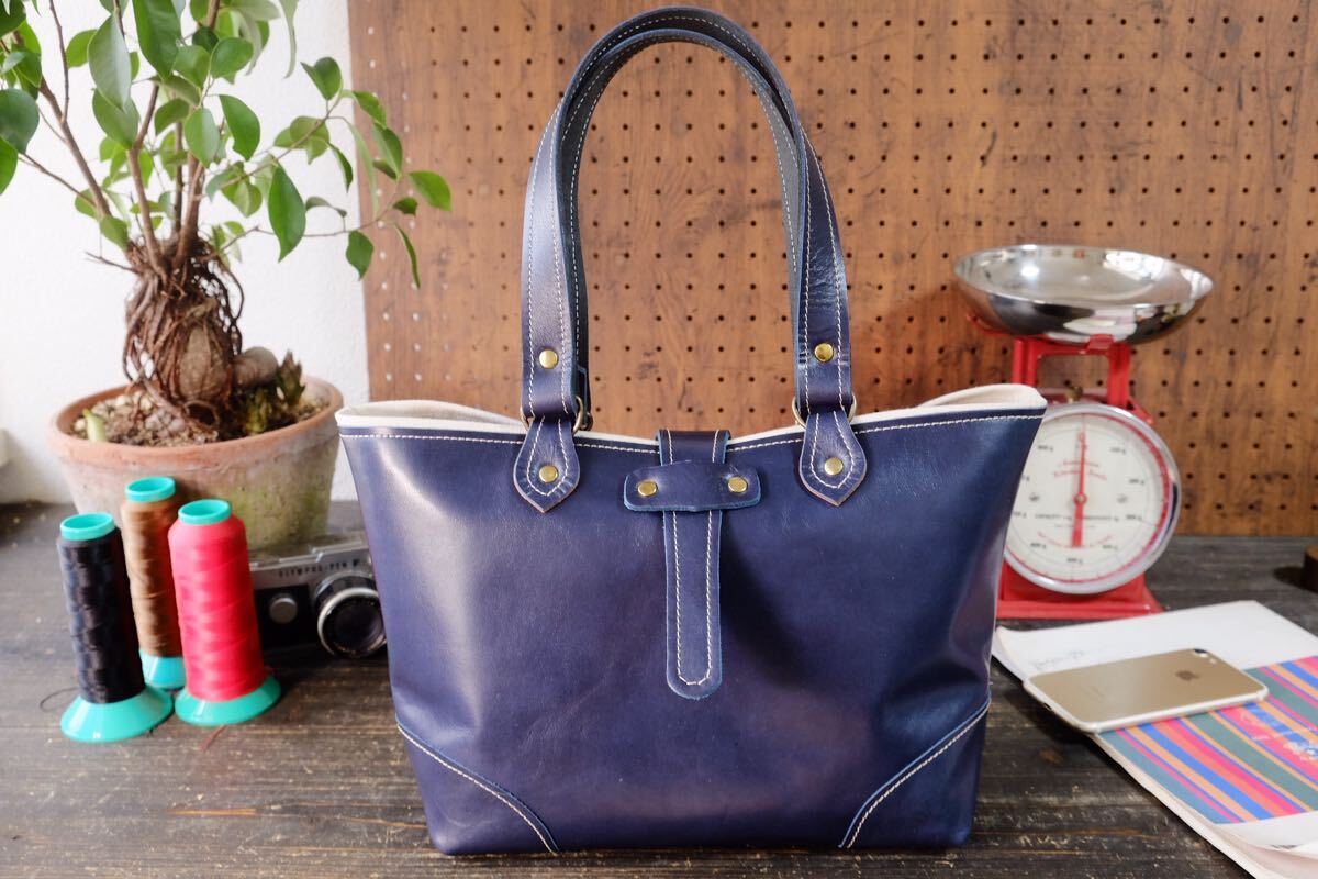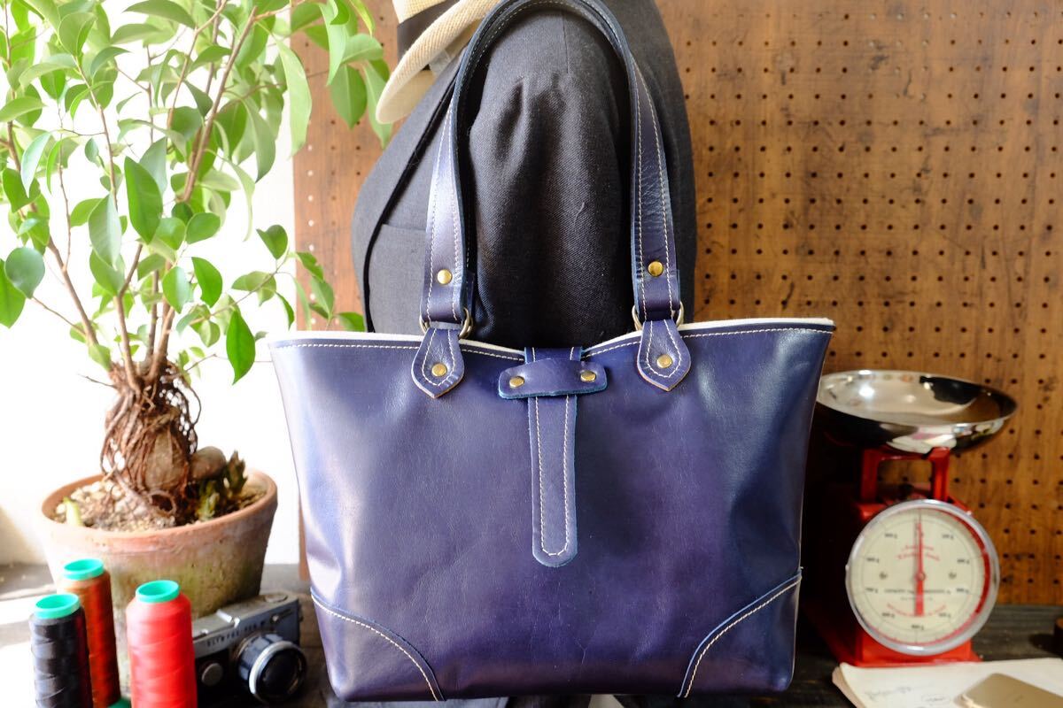 ◆◇国産ネイビースムースレザー牛革トートバッグ作家手作り★紺色日本製帆布鞄メンズレディース