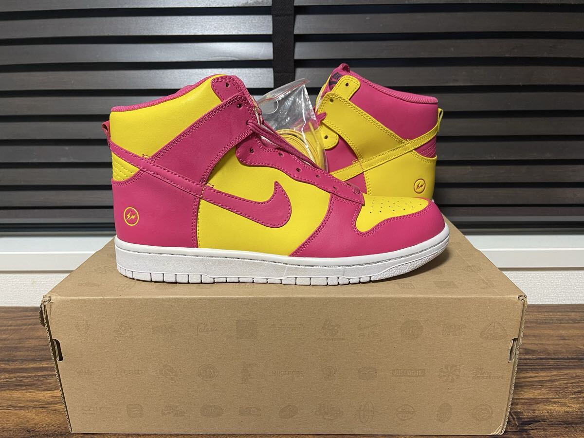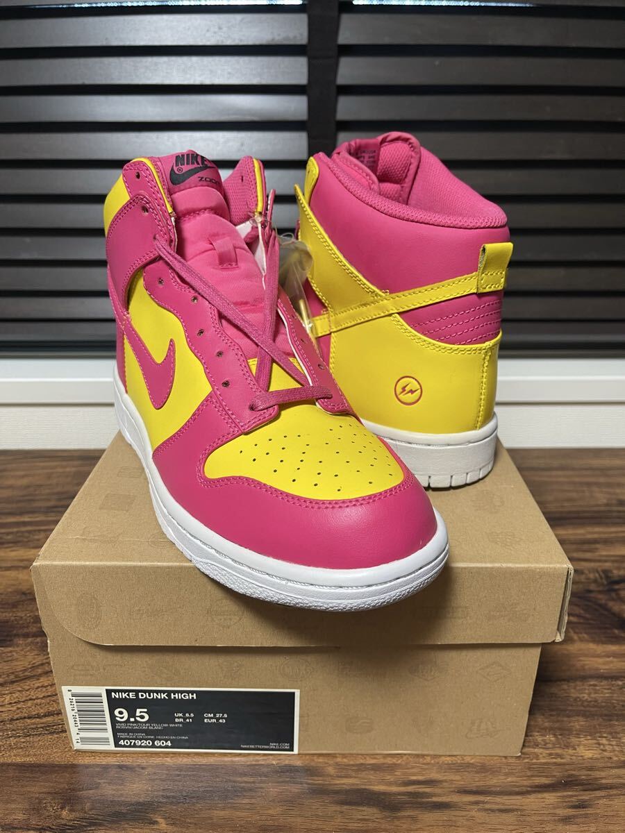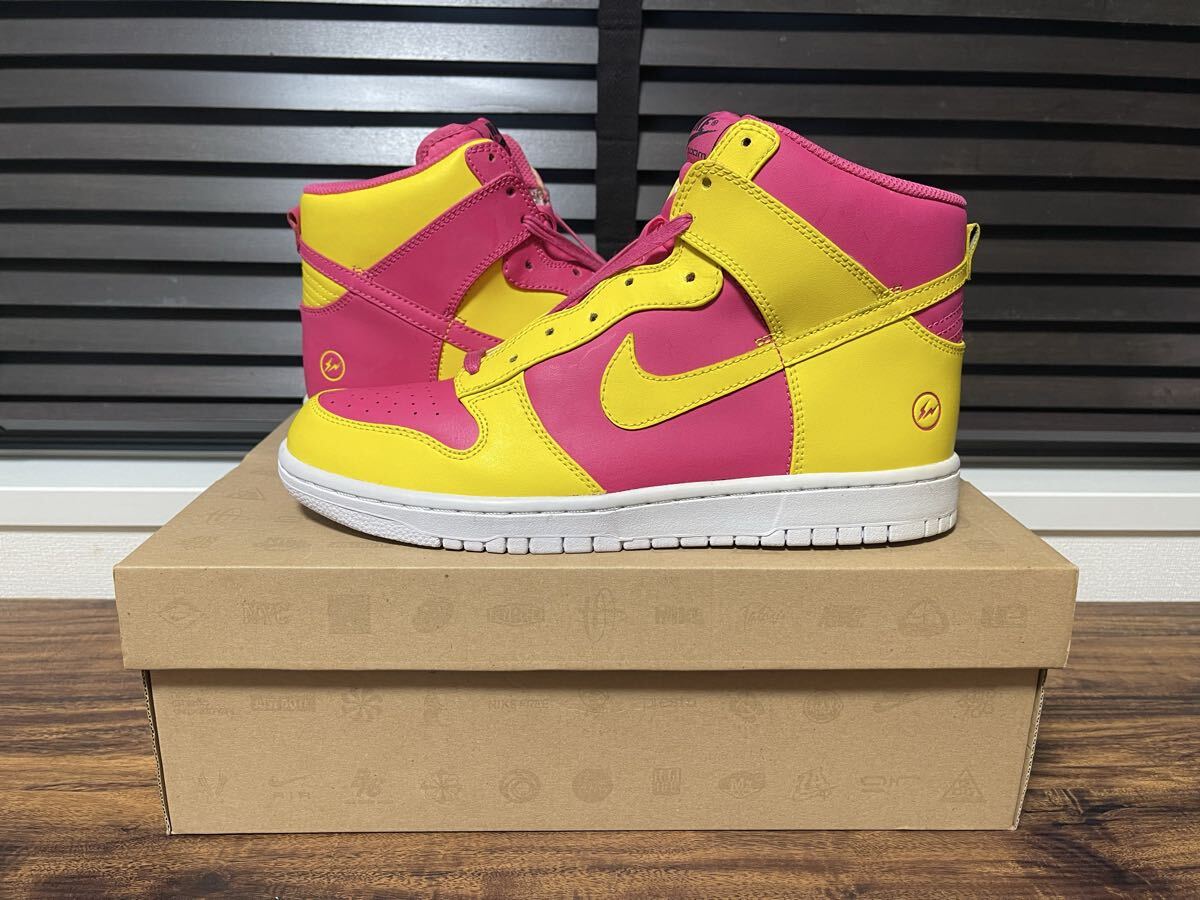 FRAGMENT DESIGN × DUNK HIGH PREMIUM "LONDON" 407920-604 (ビビッドピンク/ツアーイエロー/ホワイト)