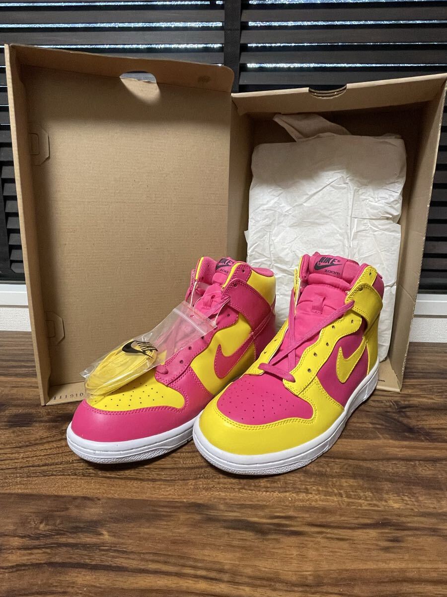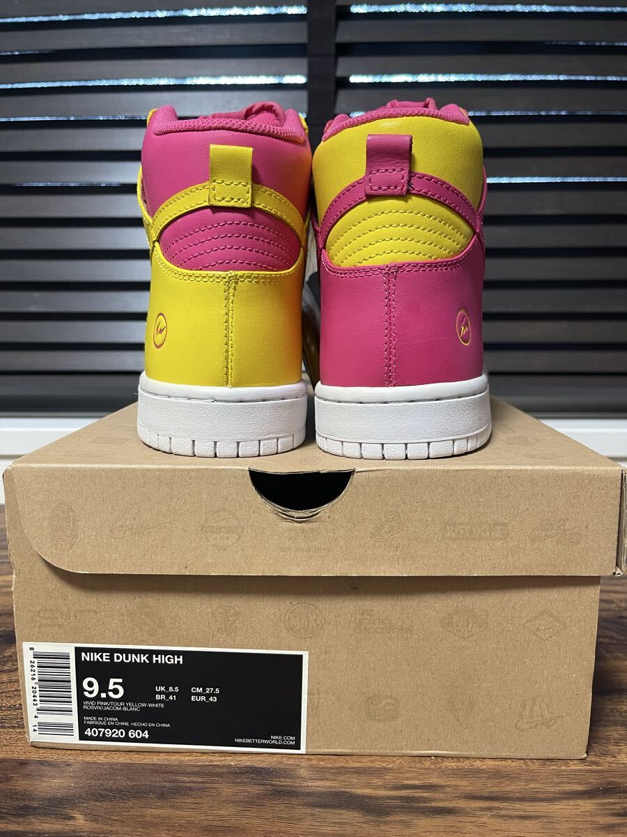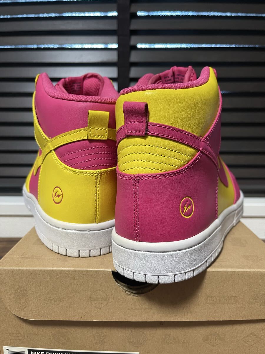 FRAGMENT DESIGN × DUNK HIGH PREMIUM "LONDON" 407920-604 (ビビッドピンク/ツアーイエロー/ホワイト)