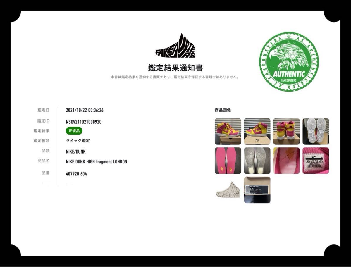 商品名:2010年製 デッドストック FRAGMENT DESIGN × NIKE DUNK HIGH LONDON 407920-604 ダンク SB TRAVIS JORDAN フラグメント