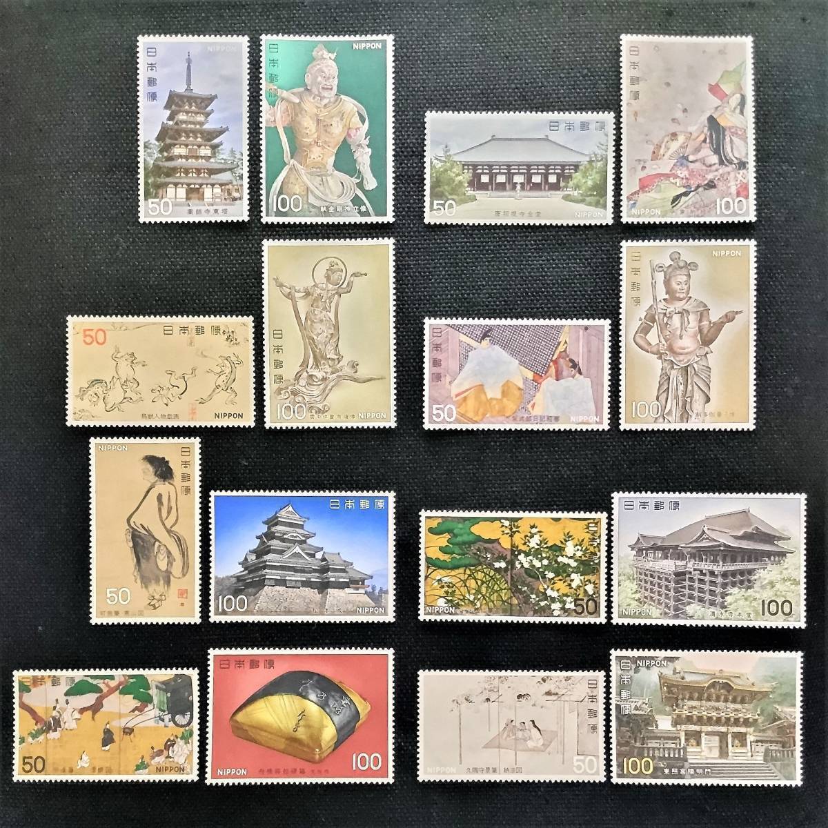 [25081707]【第2次国宝シリーズ 第1集~第8集】単片全16種 耳紙付 第二次国宝「薬師寺東塔 金剛神立像…」1976年~1978年発行 額面1,200円