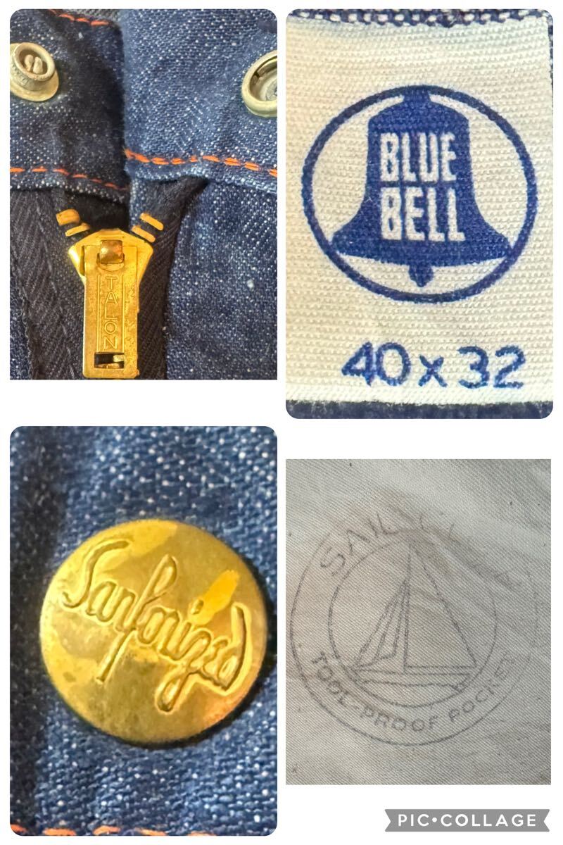 極美品 BLUE BELL 50s 60s 極太 ペインターパンツ 40×32 TALONジッパー Sanforized