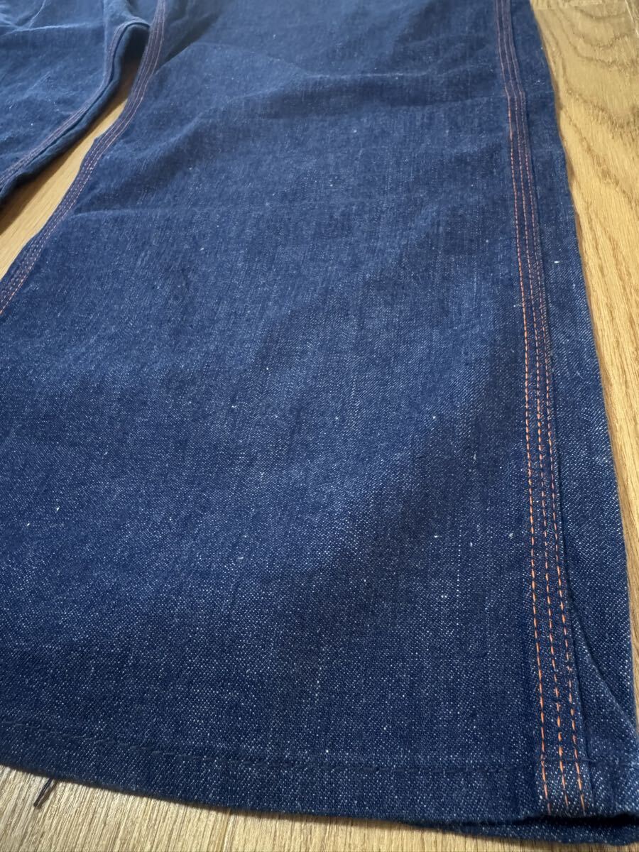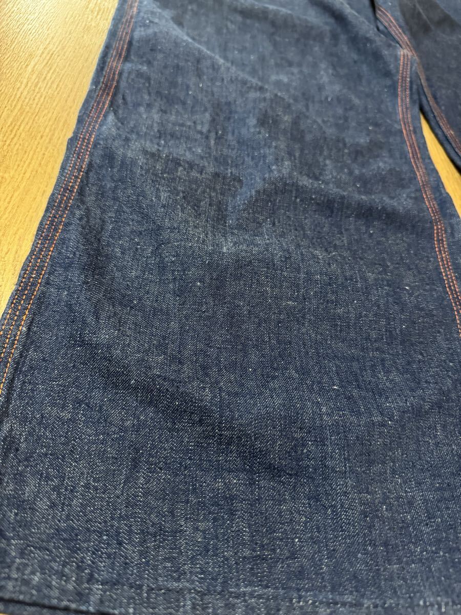 かなり濃紺で、主観ではデッドストックをワンウォッシュした程度。