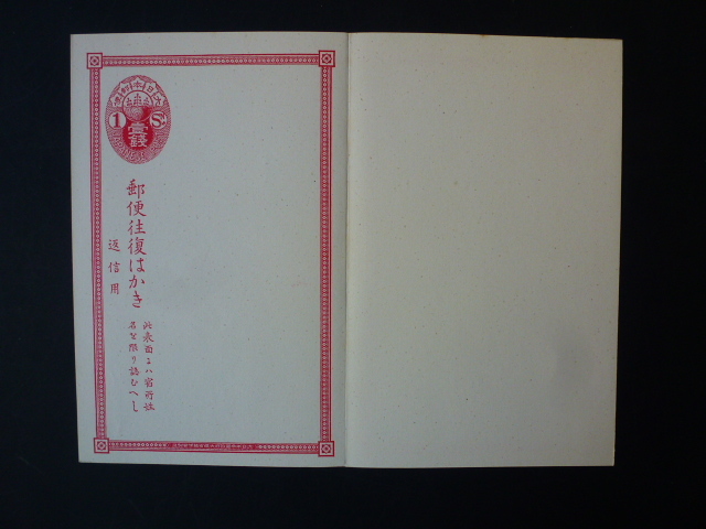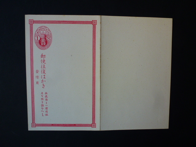 小判1銭はがき   往復はがき   紙幣寮銘      未使用   美品