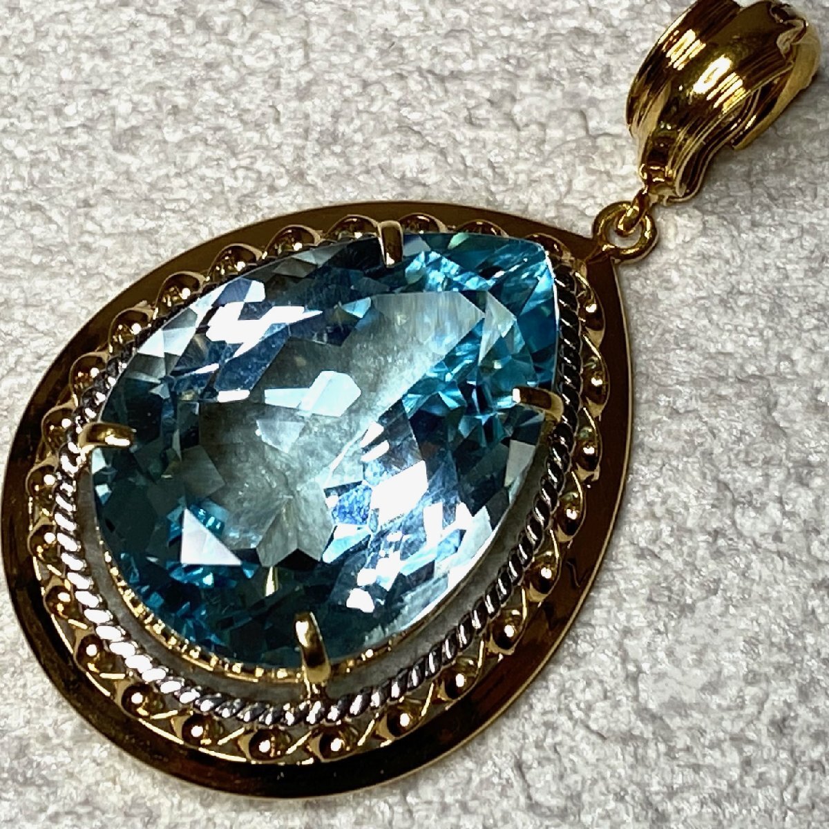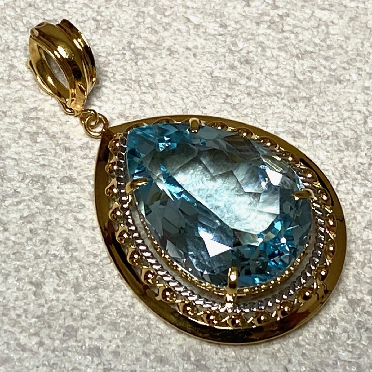 | ☆【KJC】K18 天然ブルートパーズ(エンハンスメント) 39.20ct 刻印 ペンダントトップ 簡易ソーティング付き | ||