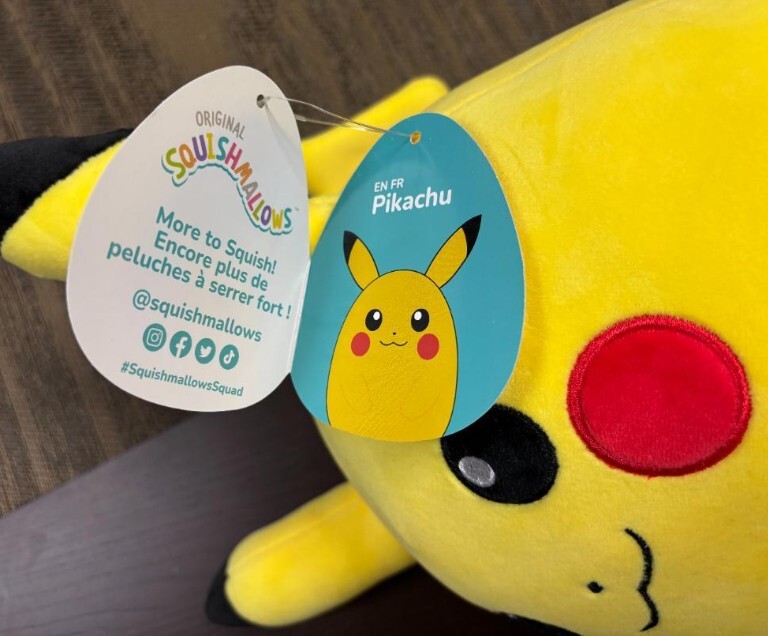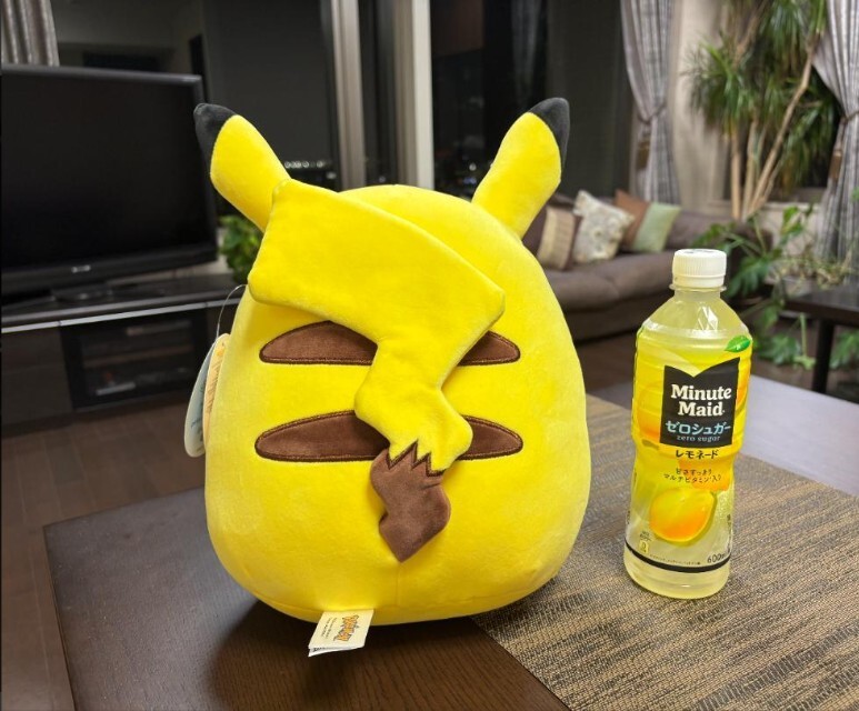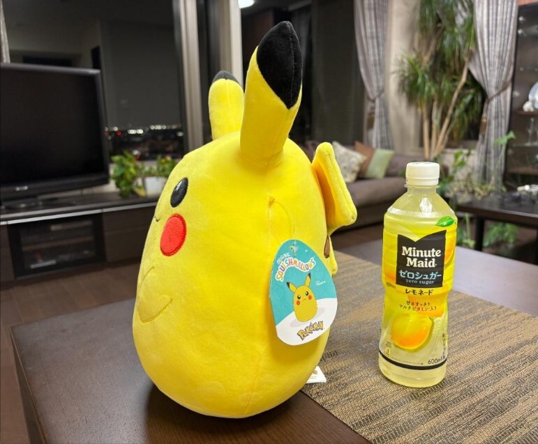 ・スクイッシュマロウズとポケモンセンターがコラボした、日本未発売のポケモンのスクイッシュマロ(マシュマロのような触感のぬいぐるみ)、もちもちのピカチュウです。