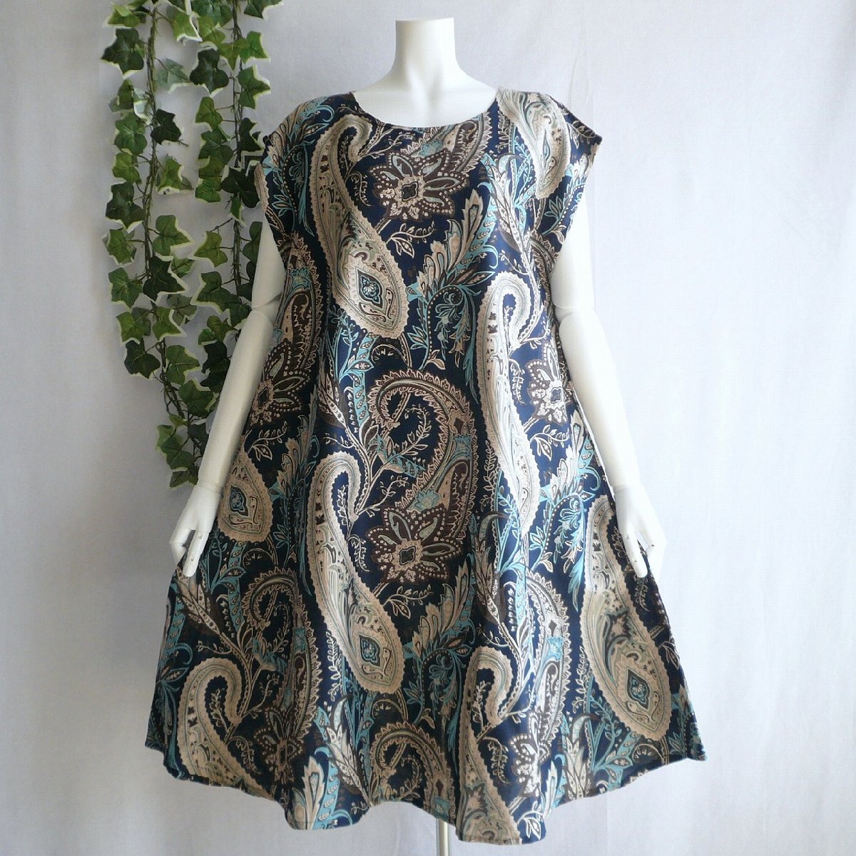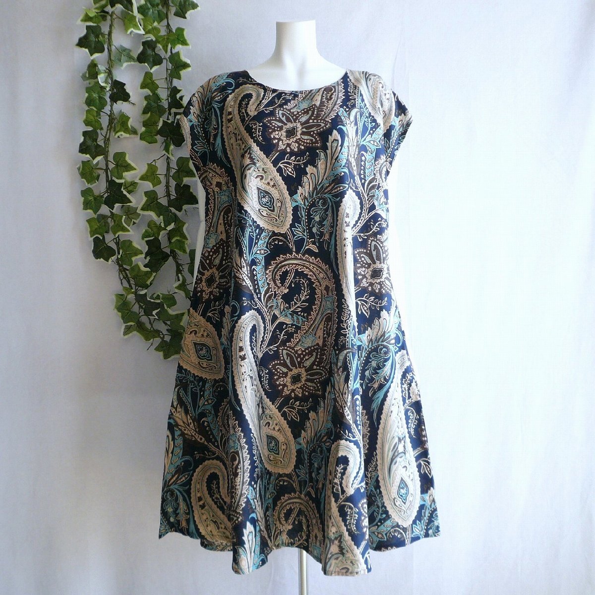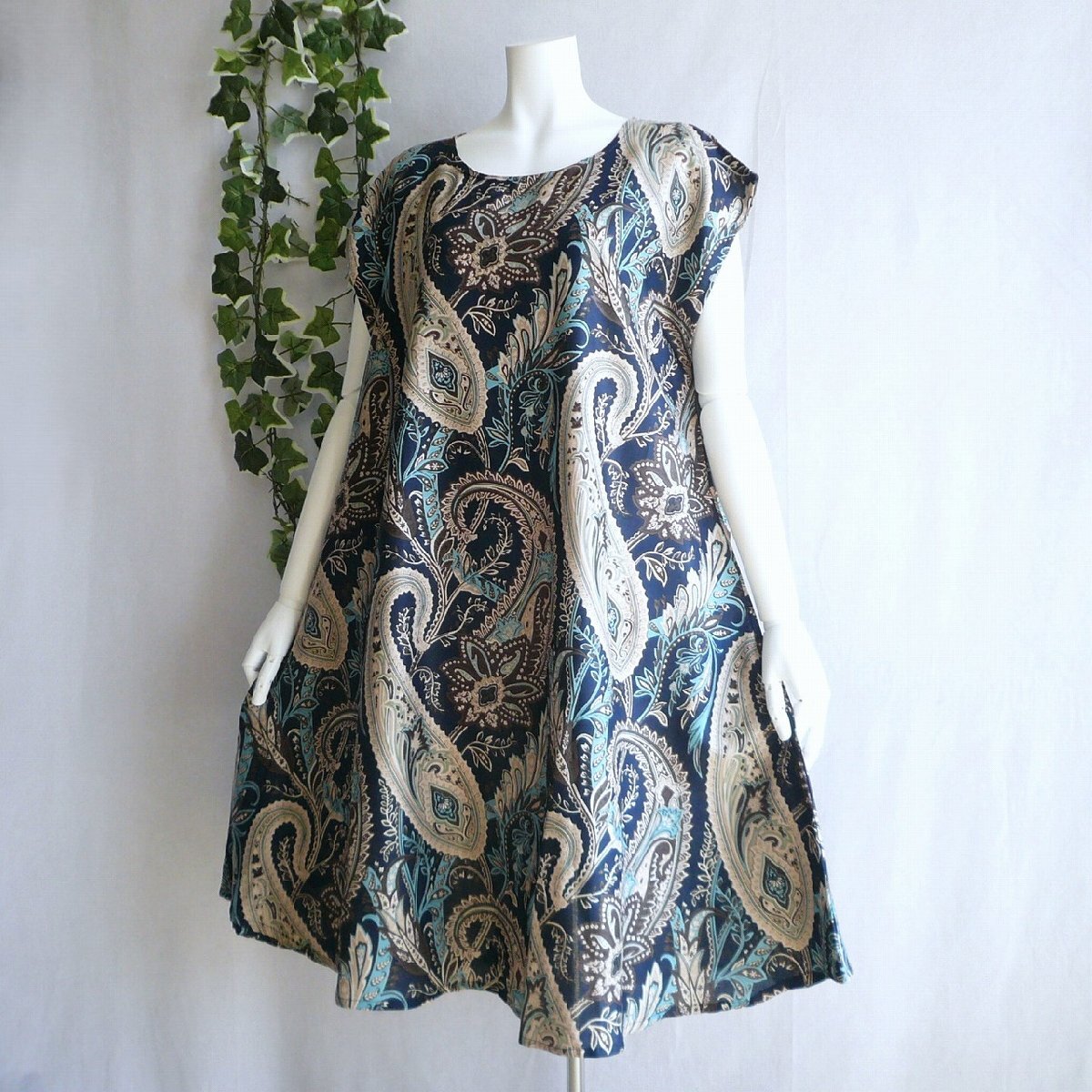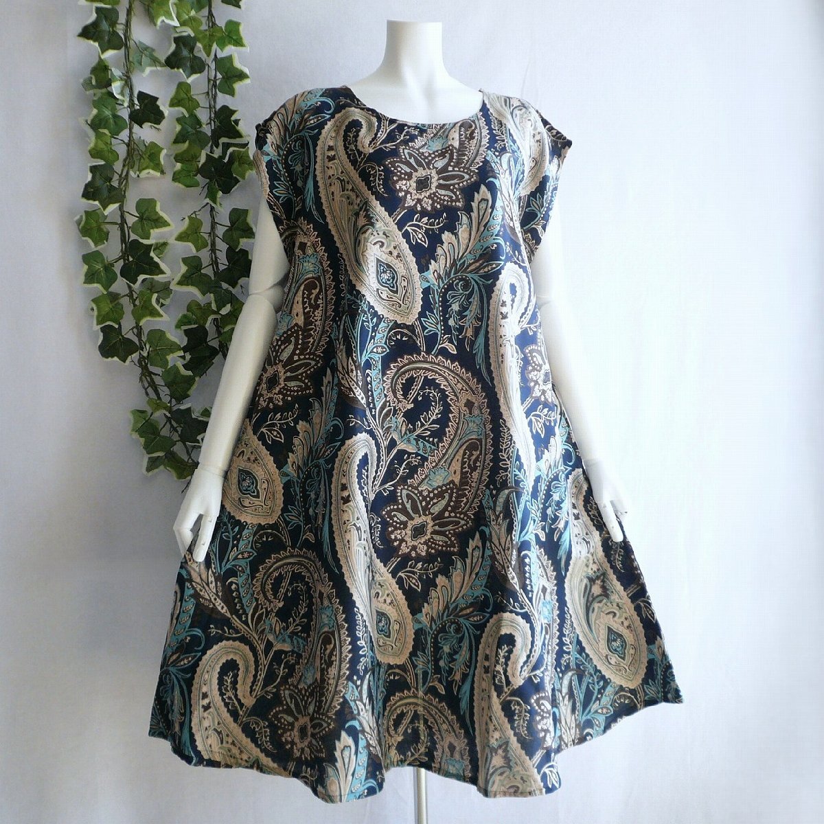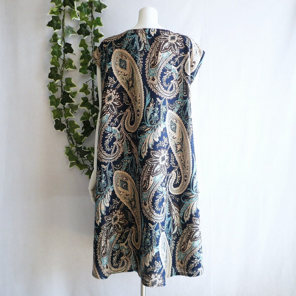 大きなペイズリー柄が印象的な洗練された大人のワンピースです。