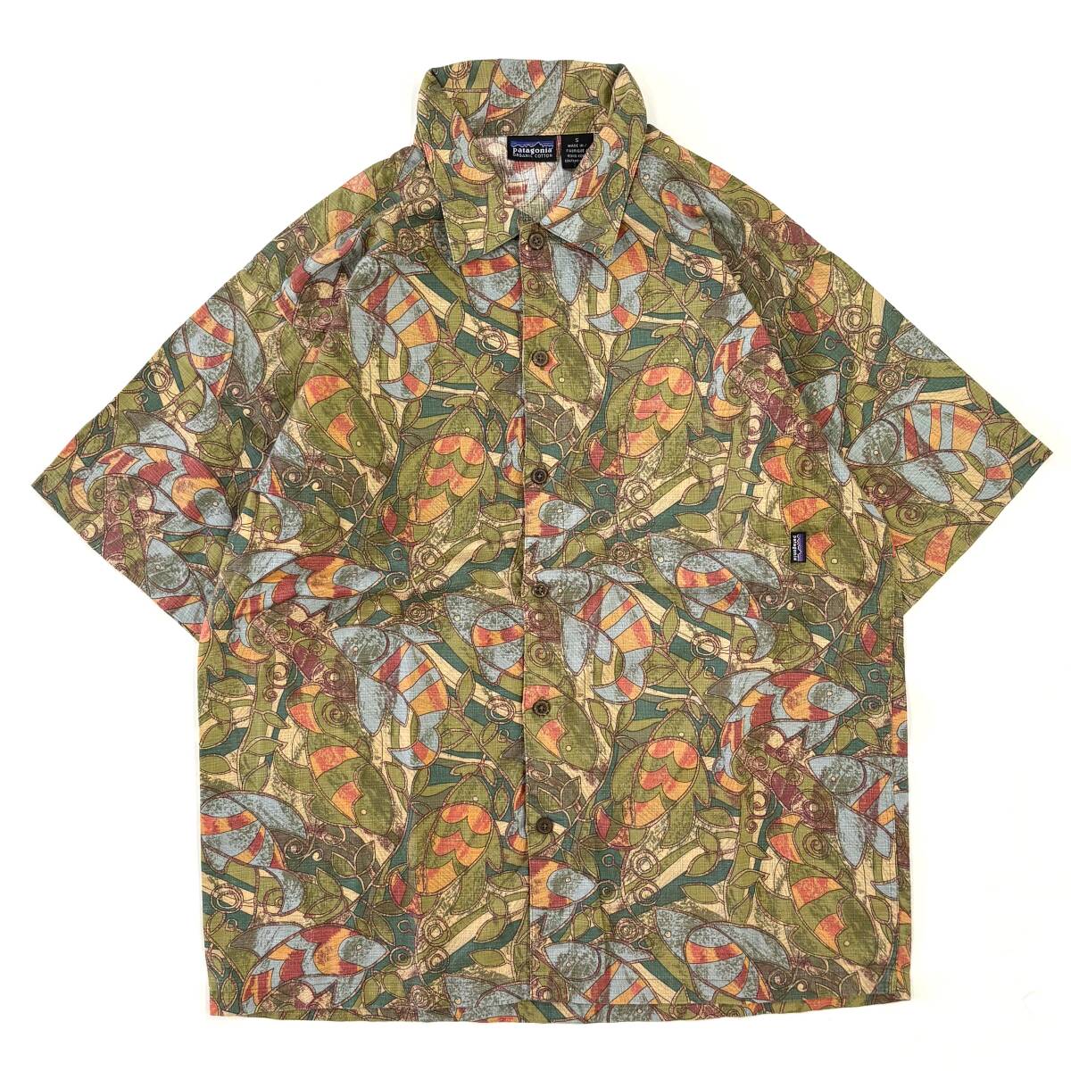 ビンテージ 90s patagonia shallows mineral blue ac shirt S old vintage オールド パタゴニア パタロハ アロハ a/c シャツ 総柄 pataloha