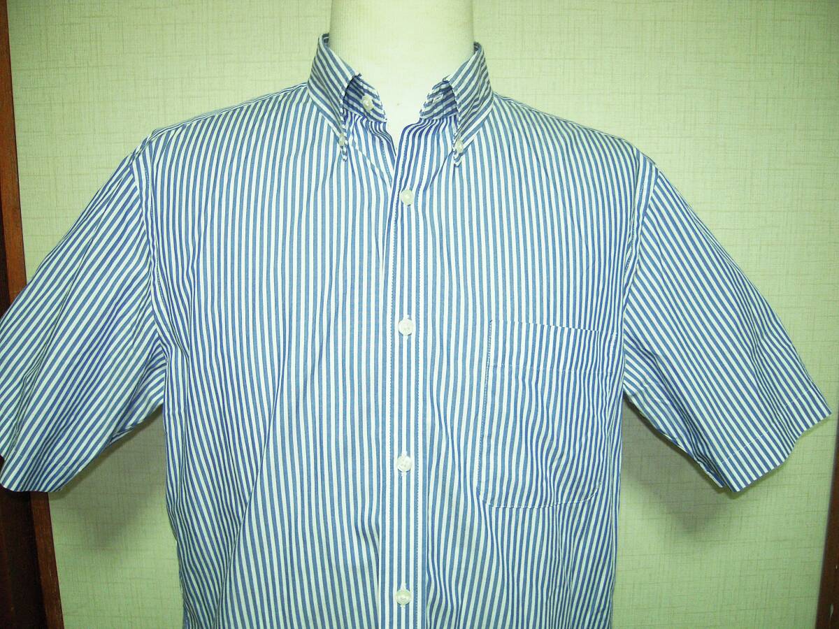 UNIQLO ユニクロ ボタンダウン 半袖 シャツ 定番 ロンドンストライプ 綿 コットン サイズ:L 送料無料