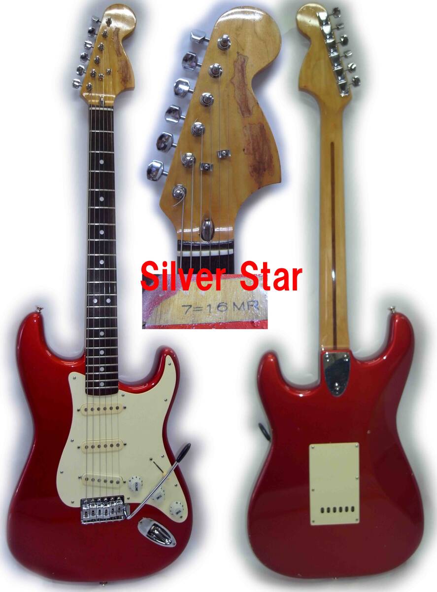 シルバースターやメーカーに関しては。削り取った痕やボディー刻印・パーツからの判断です。当方、他にも同じ年代のギターを所有していますので比べて判断の他、検索で細かく調べた詳細よりの説明になります。