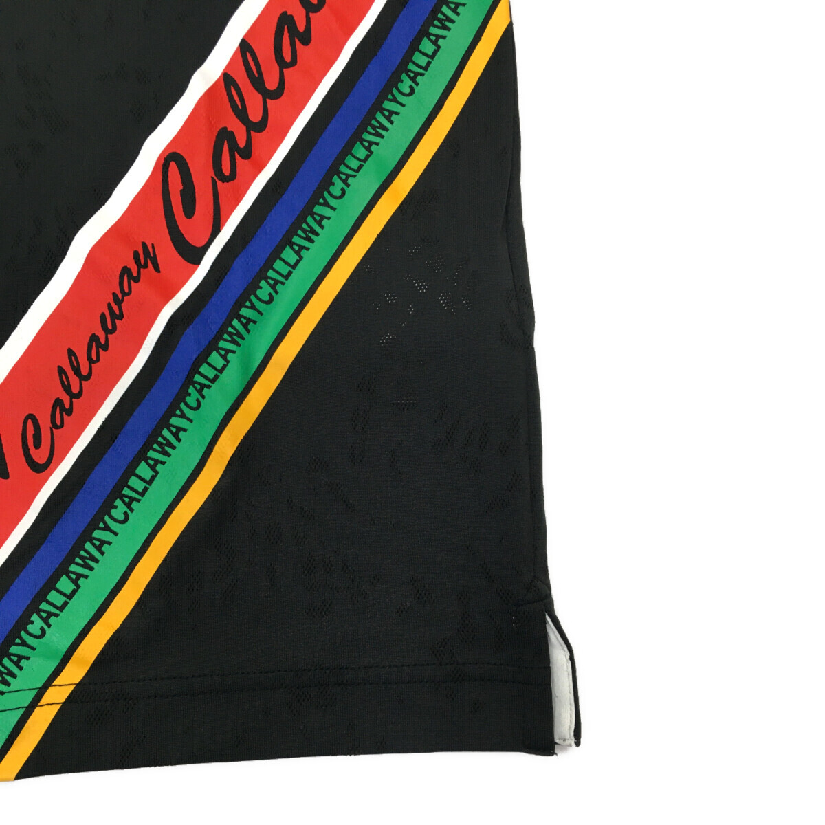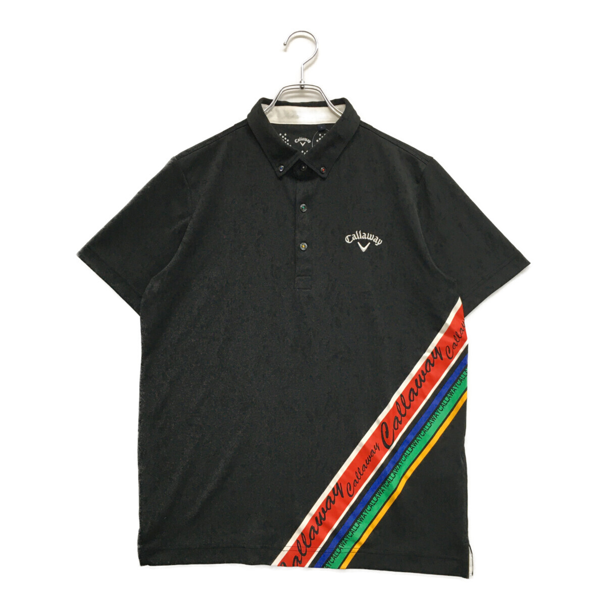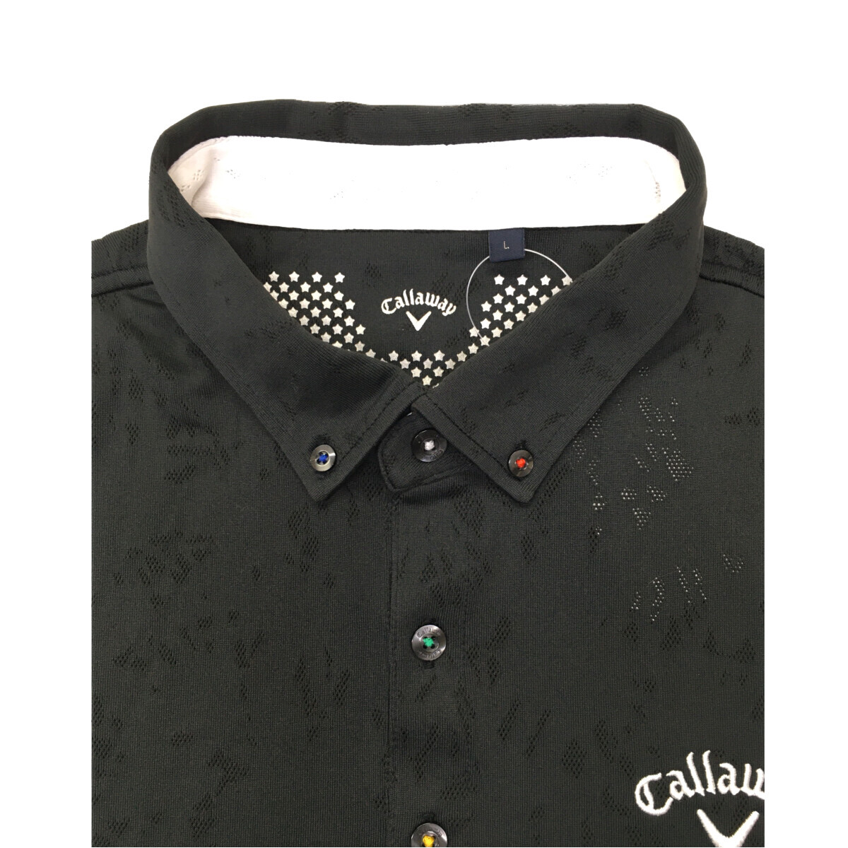 coco 中古【値下げ】 キャロウェイ Callaway メンズ 半袖ポロシャツ L 黒 ブラック ボタニカル柄 ボタンダウン ネコパケ発送可 118952