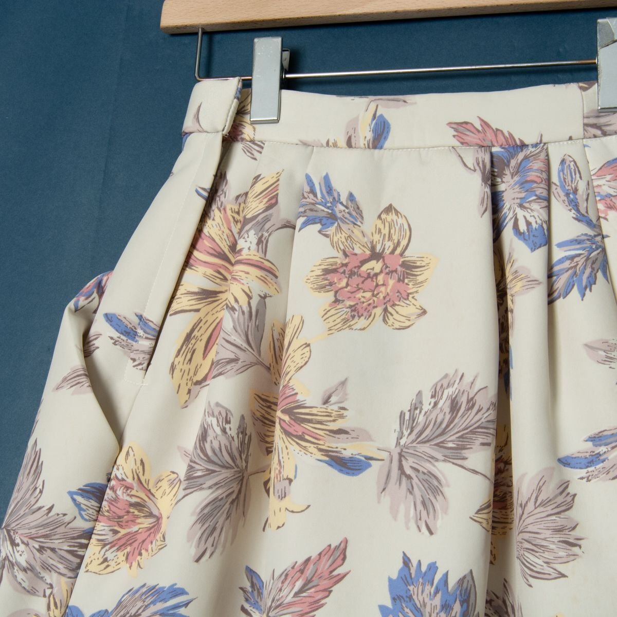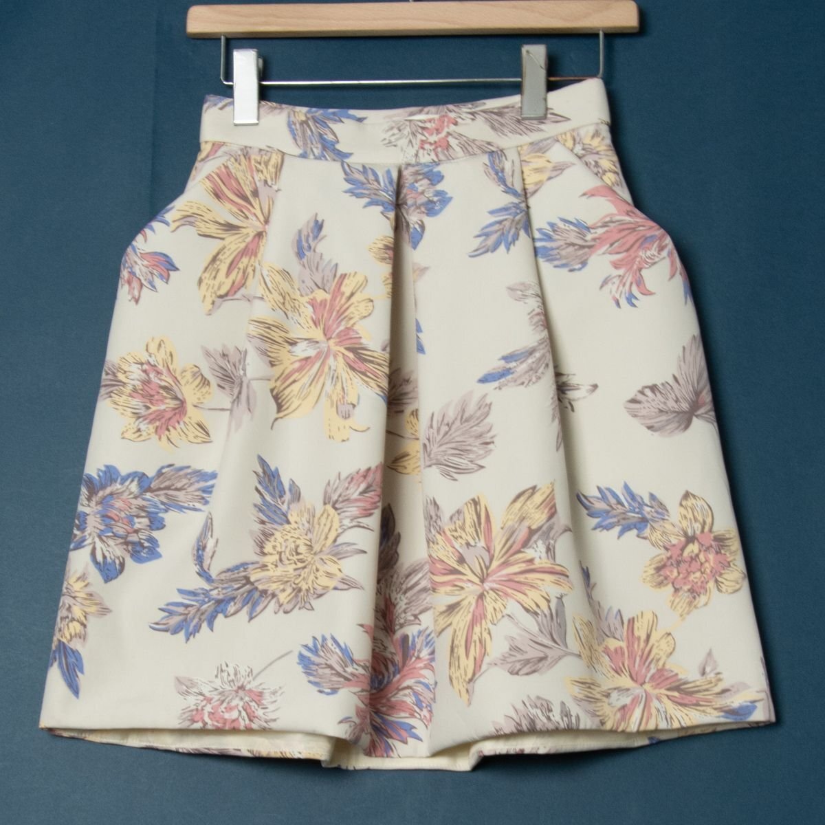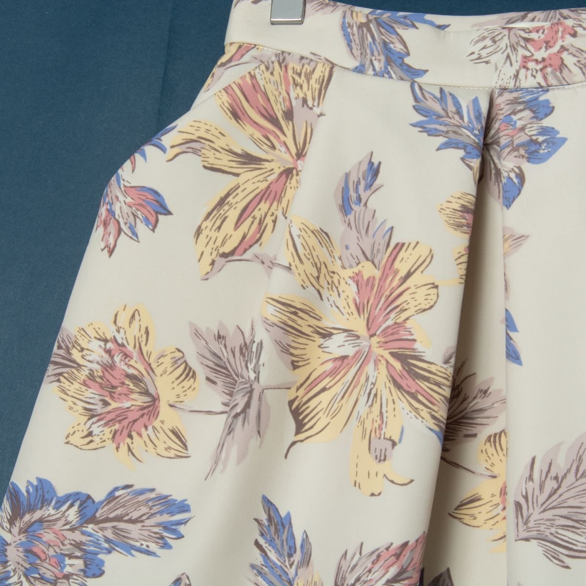 | サイズ | 表記サイズ:1 ウエスト:64cm ヒップ:約110cm 程度 着丈:52cm 裾幅:69.5cm |