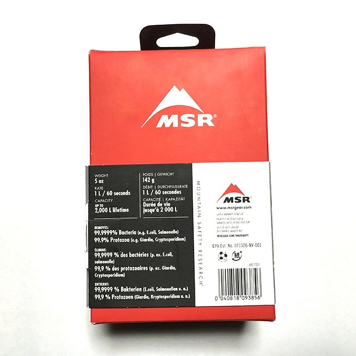 軽量、コンパクトでろ過能力も高い浄水器【MSR】トレイルショットマイクロフィルター【31385】浄水しながら直接飲める【中空糸膜フィルター