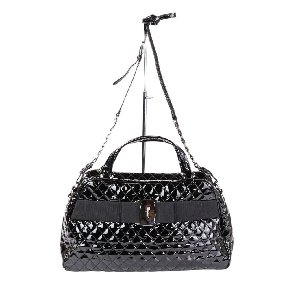 商品名:Salvatore Ferragamo サルヴァトーレフェラガモ ヴァラリボン キルティング パテント 2wayショルダーバッグ ブラック