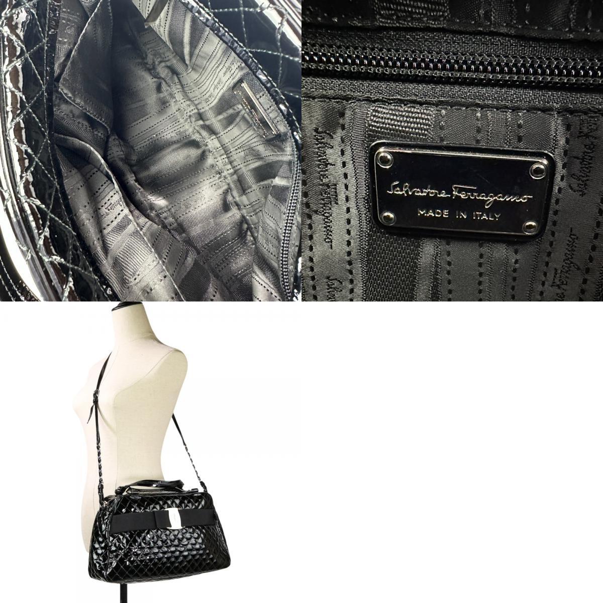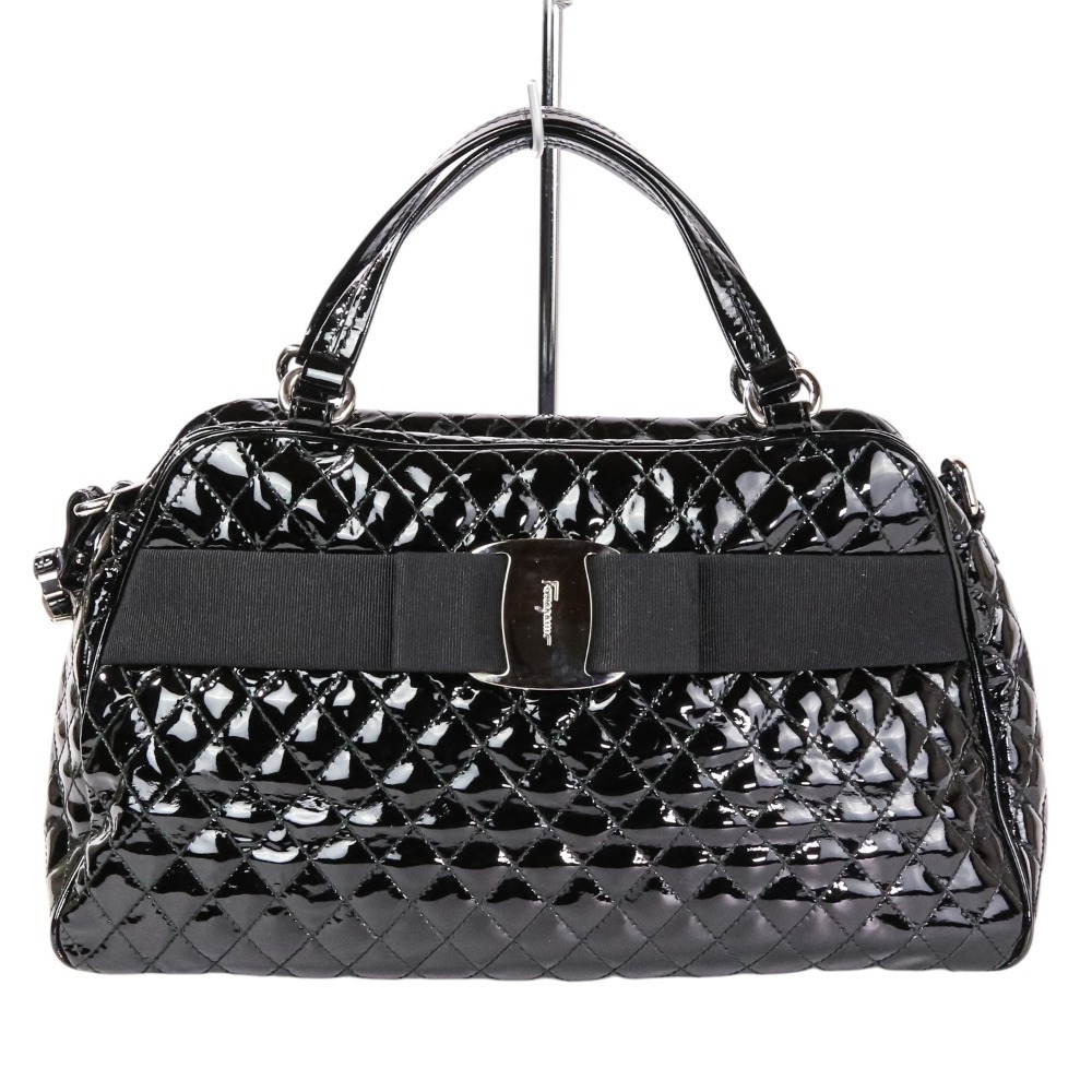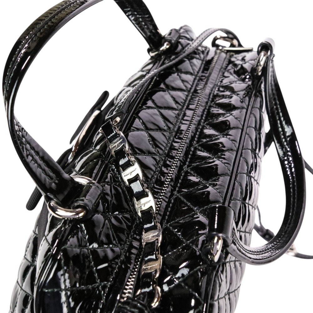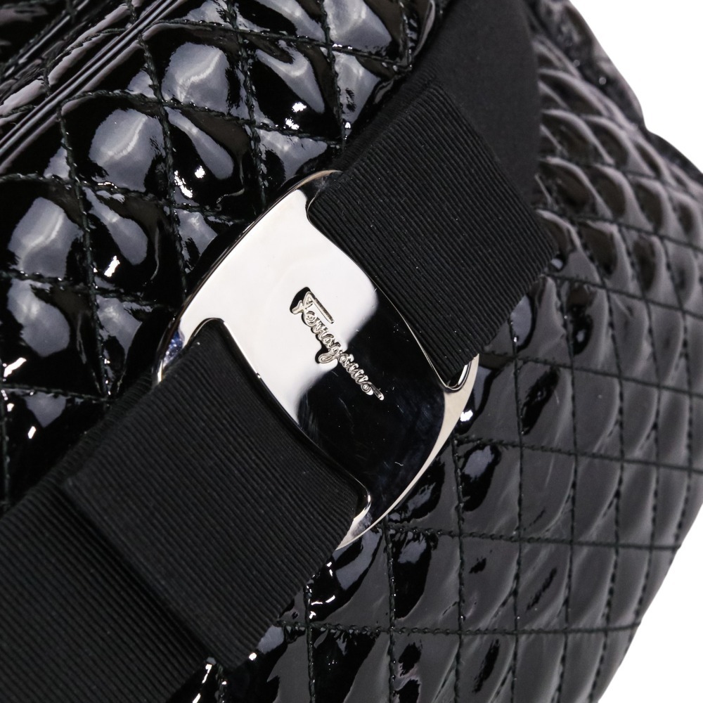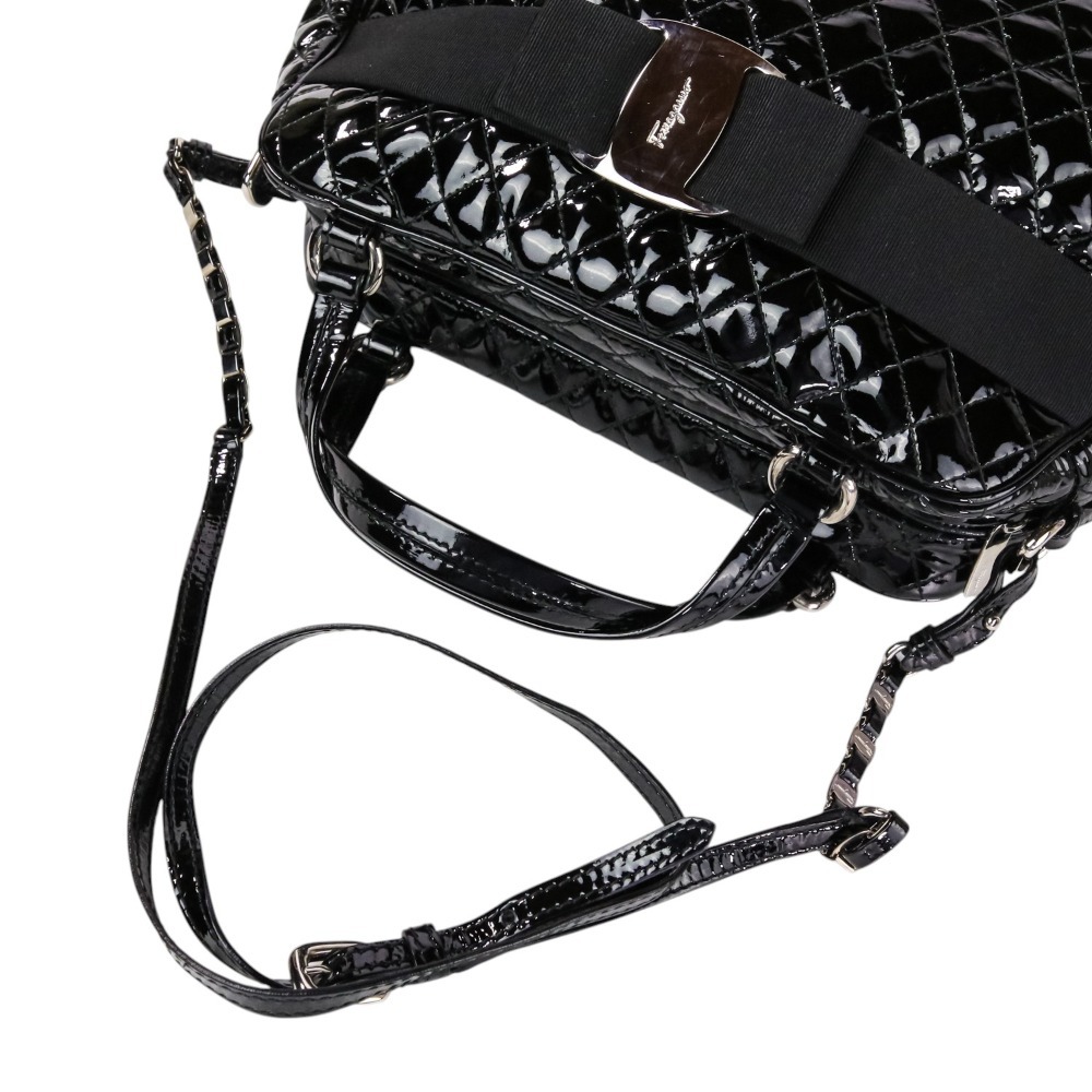 美品 Salvatore Ferragamo サルヴァトーレフェラガモ ヴァラリボン キルティング パテント 2wayショルダーバッグ ブラック