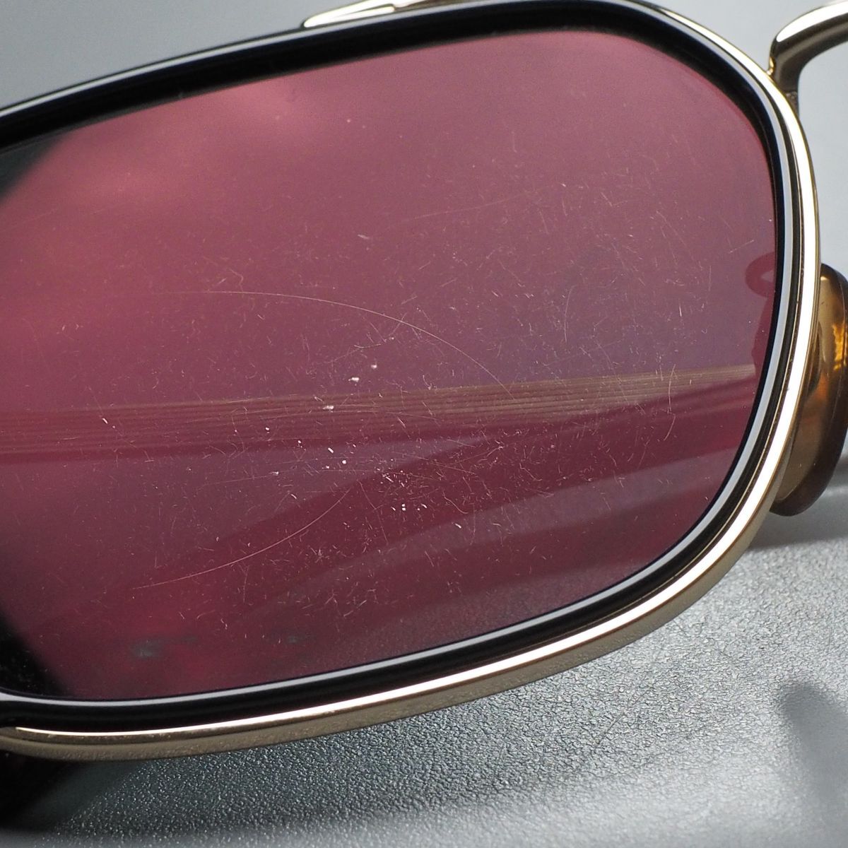 【コンディション詳細】 フレーム・レンズ共に所々に擦れキズが見られ、ノーズパッドに変色が見られますが、その他支障になるようなダメージ等はなくこれからも十分にご愛用いただけるコンディションです。 |