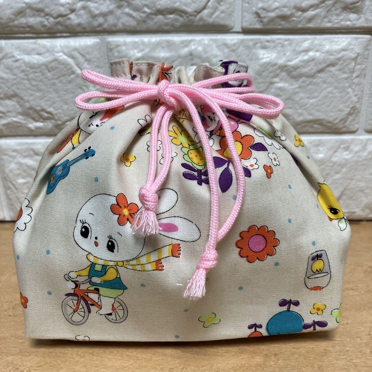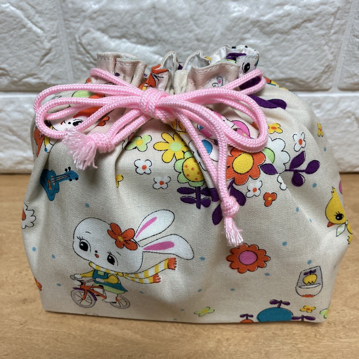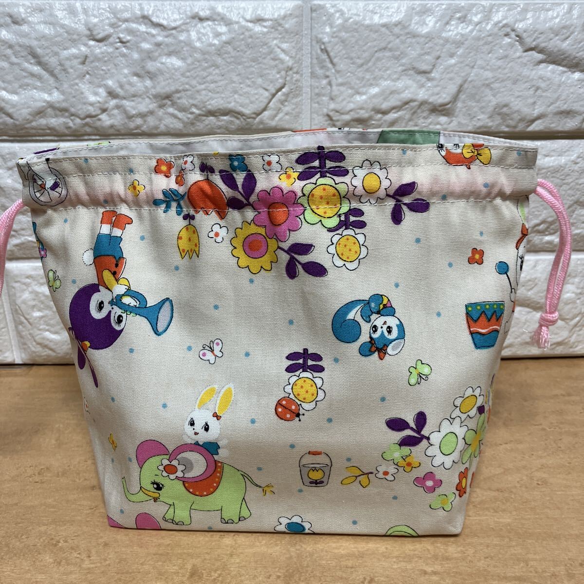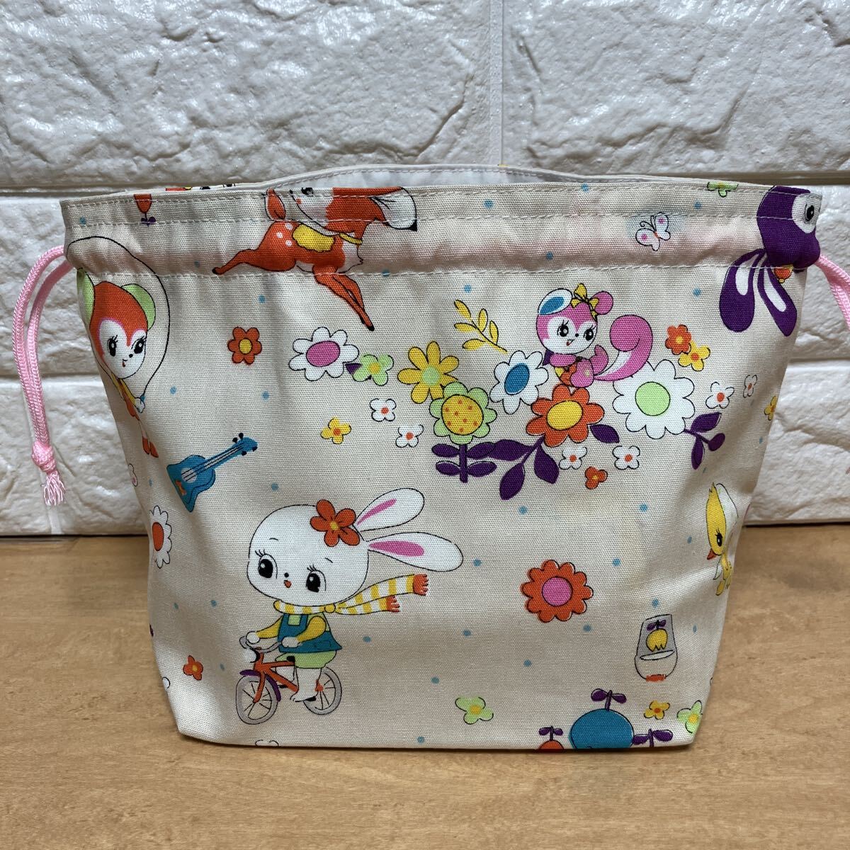 ハンドメイド★お弁当袋 NO.49【レトロ調 きなり】★裏地付き ランチ 巾着 入園 入学