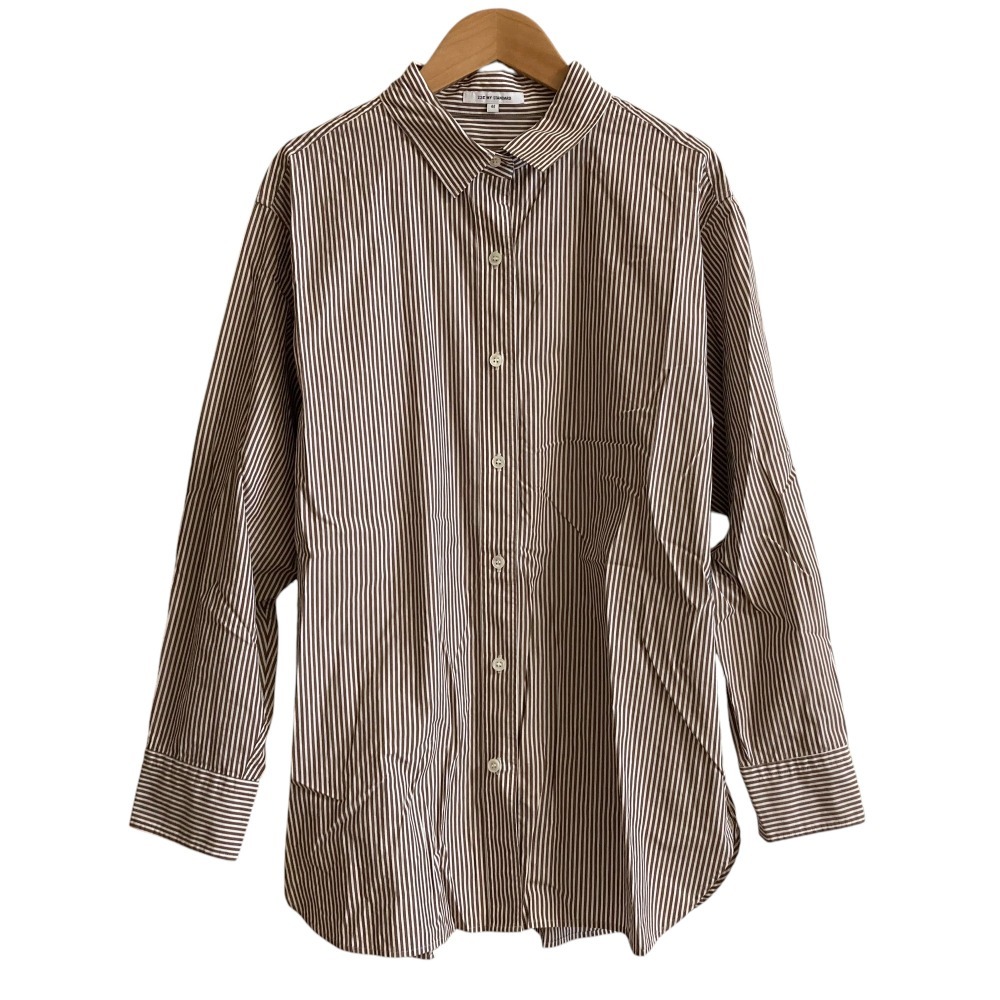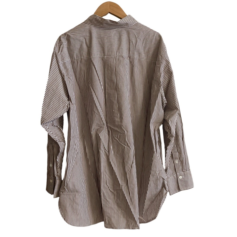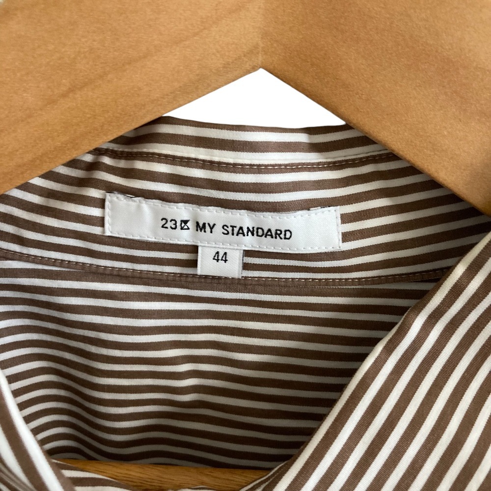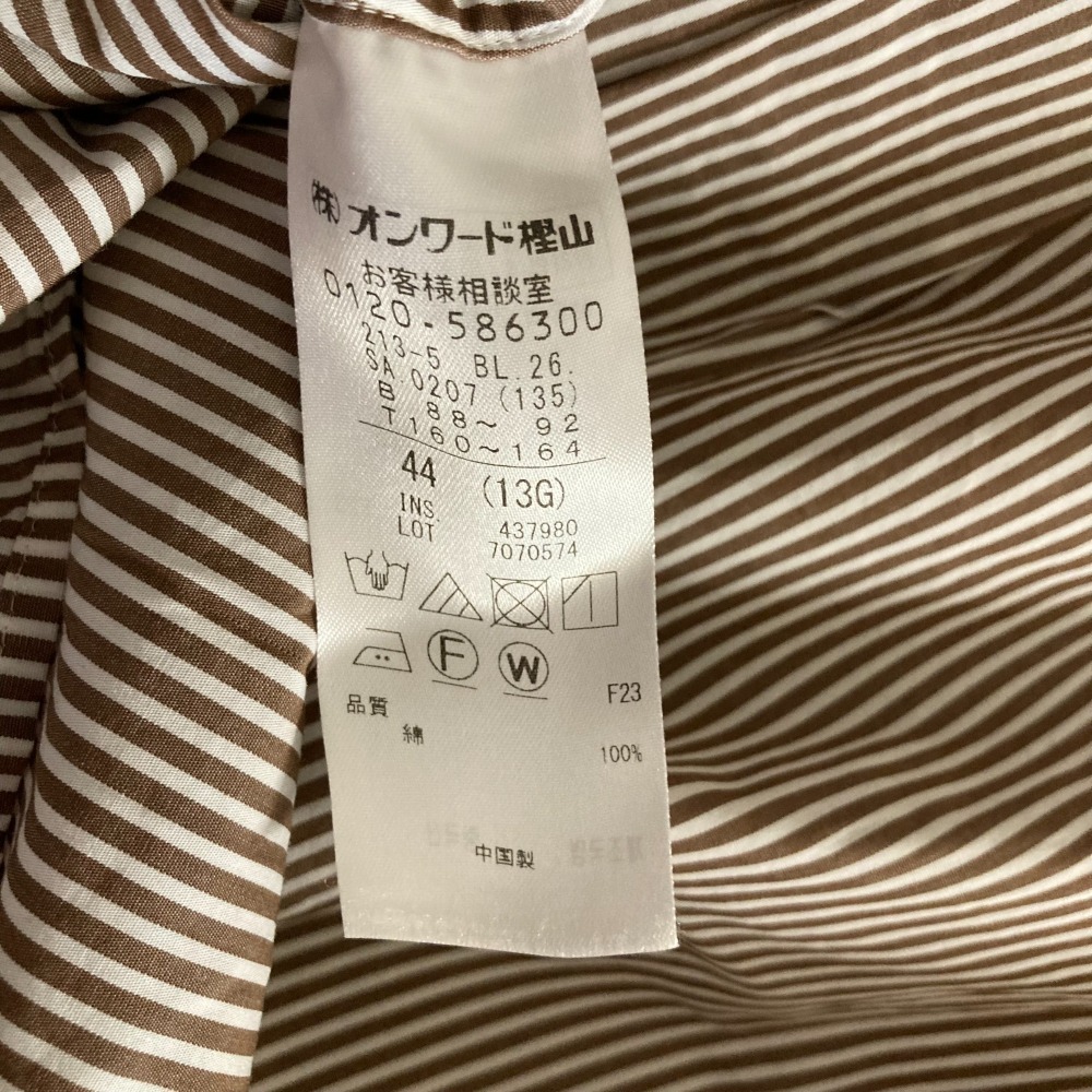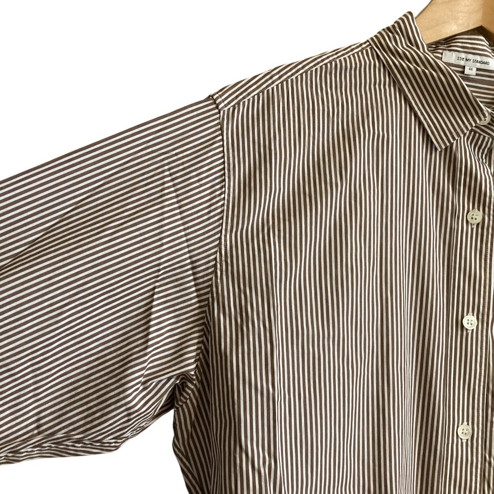 美品 23AW 23区 ニジュウサンク CANCLINI ベーシック シャツ ストライプ柄 長袖 ブラウス BL26SA0207 大きいサイズ 44 ブラウン