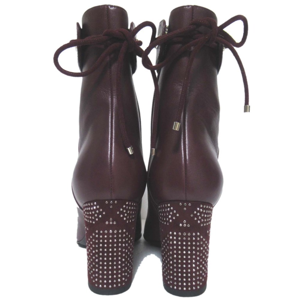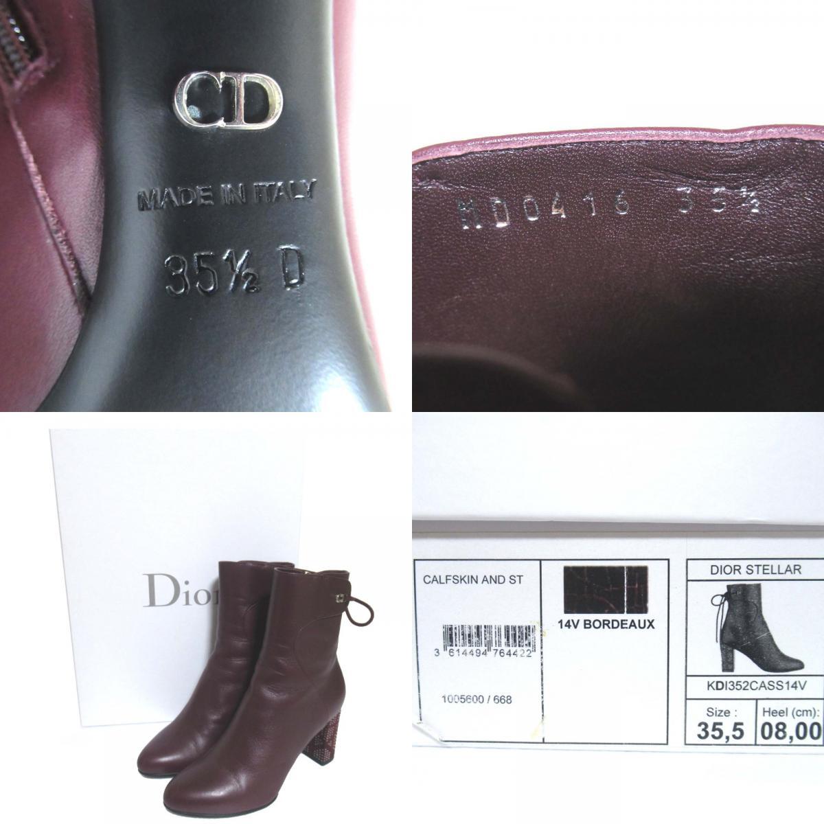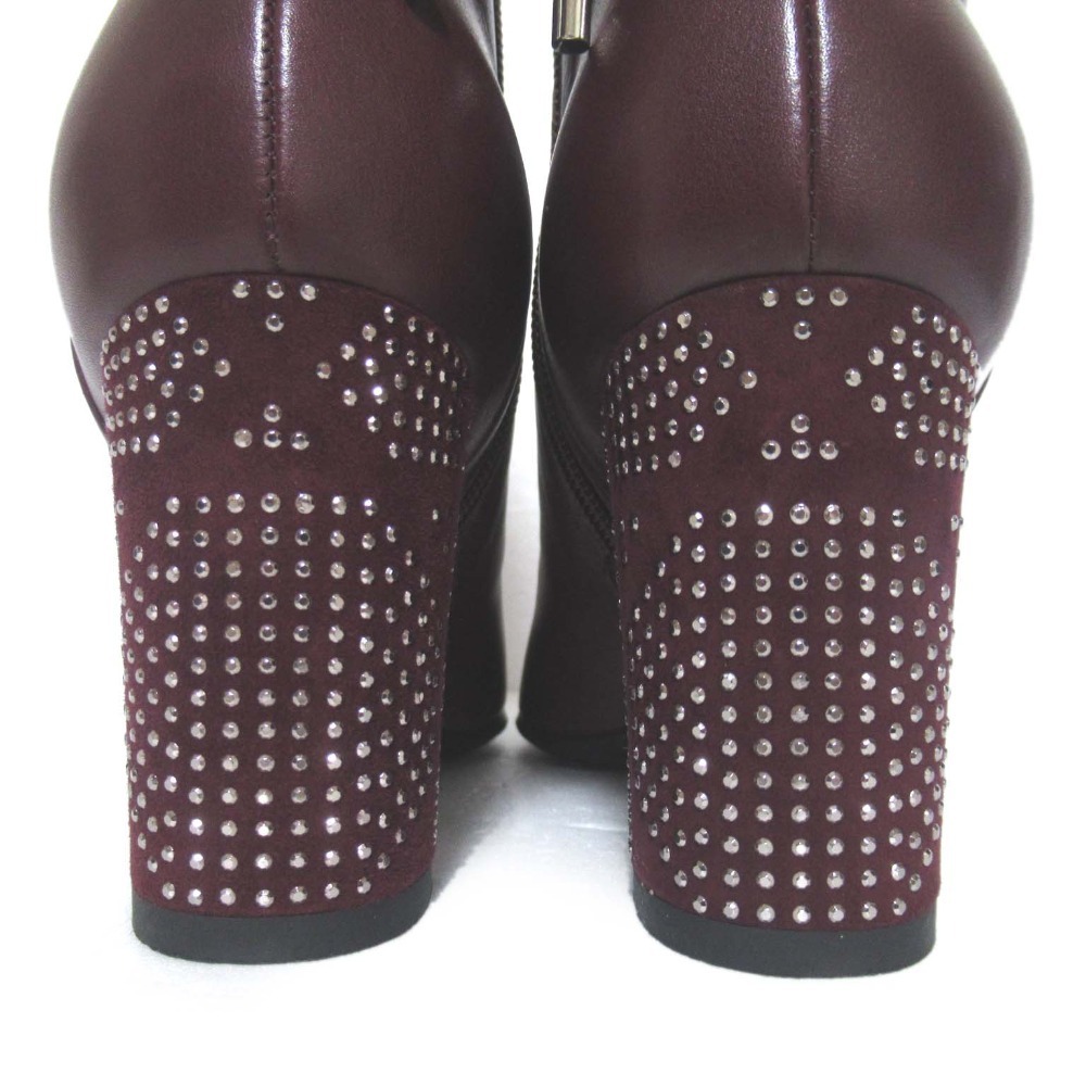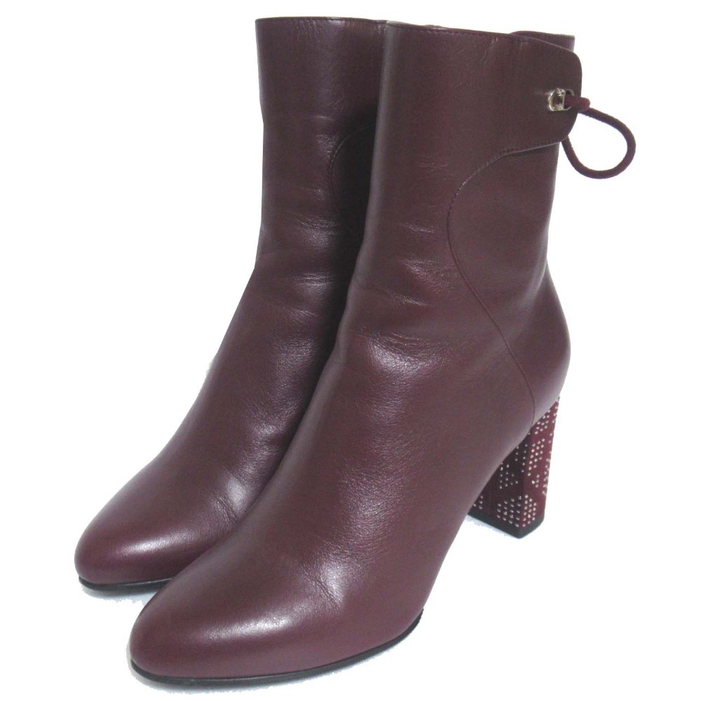美品 Christian Dior クリスチャンディオール STELLAR ラインストーン装飾 アンクルブーツ ショートブーツ 35.5 22.5cm相当 ボルドー