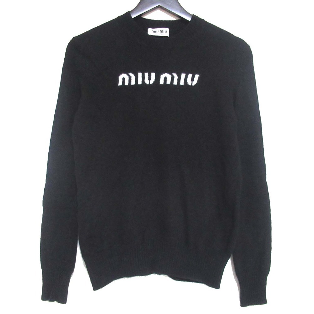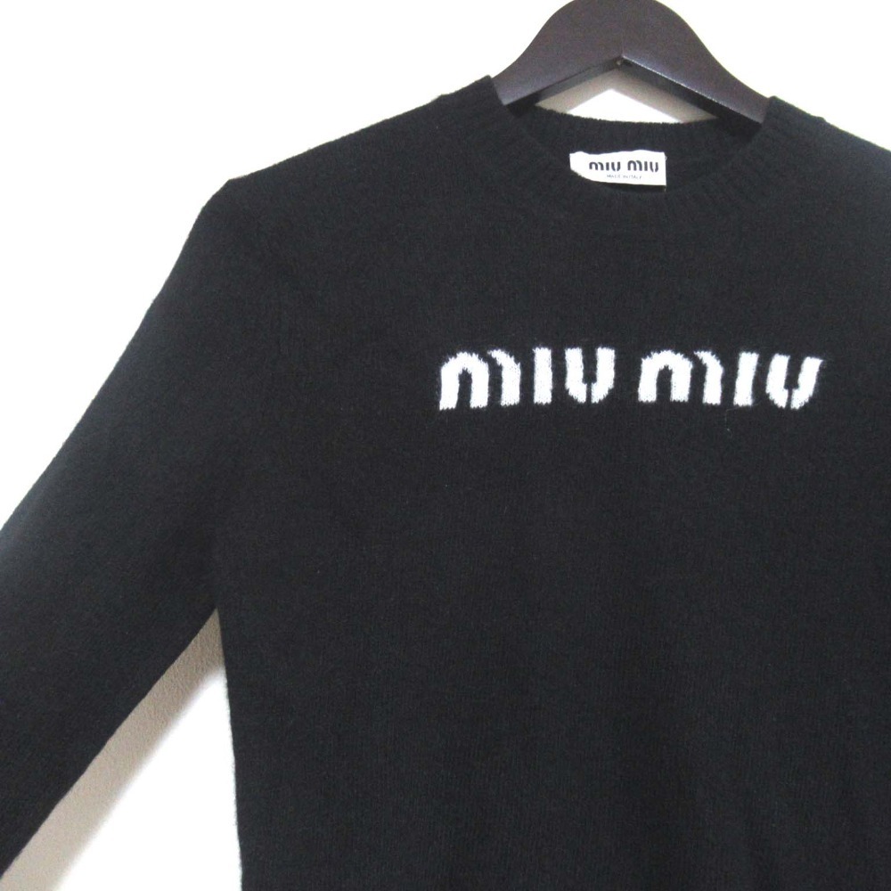 美品 23AW miu miu ミュウミュウ ロゴジャガード ウール カシミヤ 長袖 ニット セーター サイズ38 ブラック