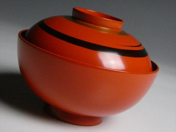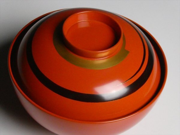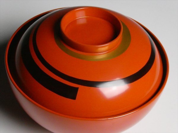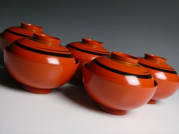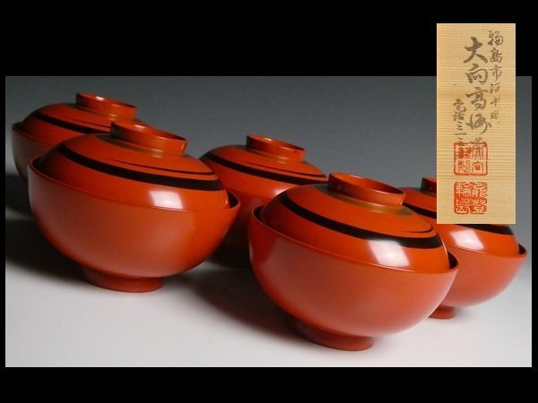 輪島塗 大向高洲堂 造 高級漆器 天然木 漆塗 洗朱塗 独楽蒔絵 吸物椀 蓋付椀 多用椀 五客 共箱 N472