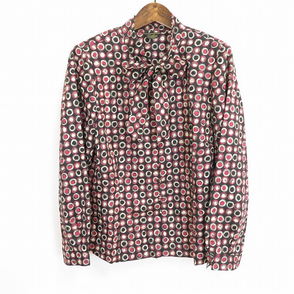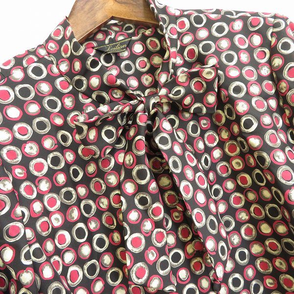 商品名 | #a レリアン Leilian シャツ ブラウス 長袖 15+ 大きいサイズ 15号 黒 ピンク マルチ ドット サークル柄 リボンタイ 日本製 937475 k01 |