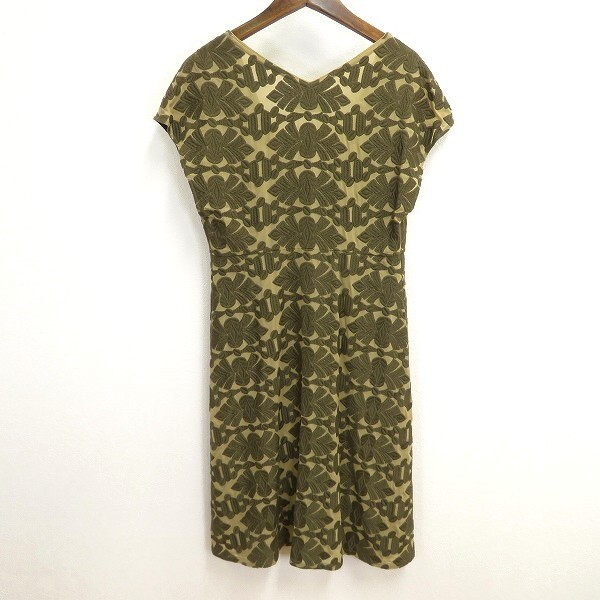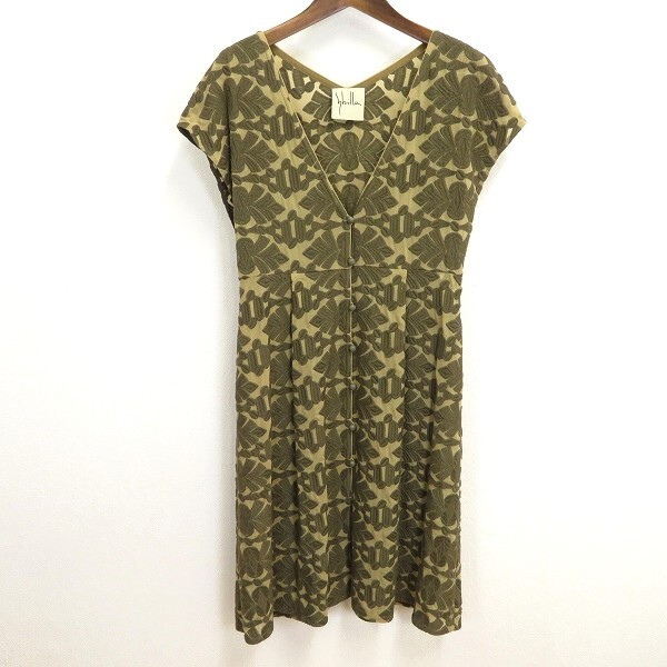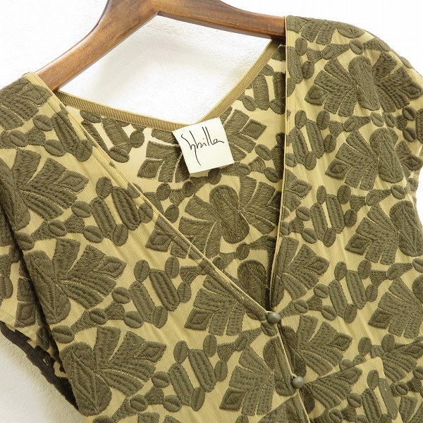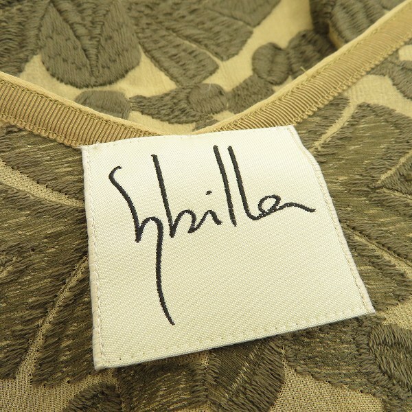 商品名 | #s シビラ Sybilla 半袖 ロング ワンピース カーキ系 L 刺繍柄 シースルー シアー Vネック フレンチスリーブ 日本製 レディース 950591 k01 |