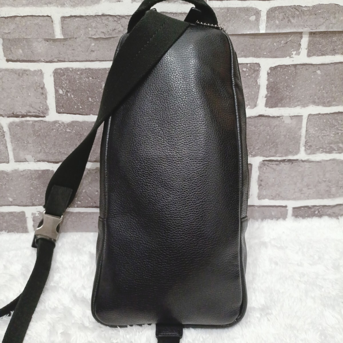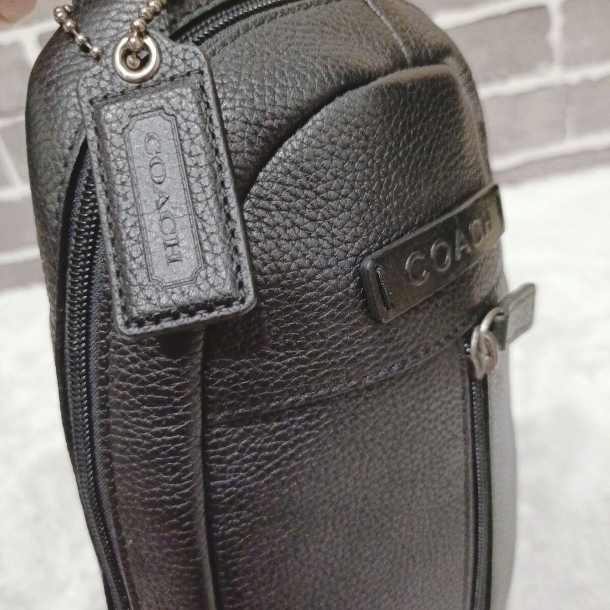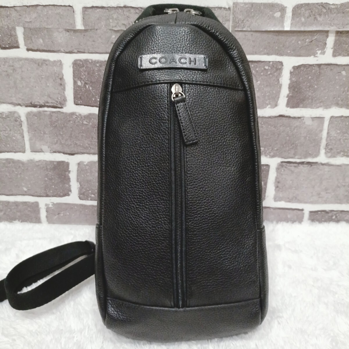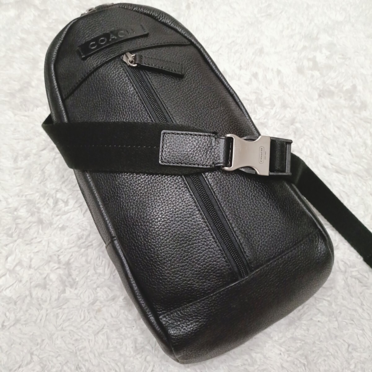 極美品● COACH コーチ クロスボディ 牛革 カーフレザー キャムデン スリング ボディバッグ 斜めがけ ワンショルダー 黒 ブラック シボ革