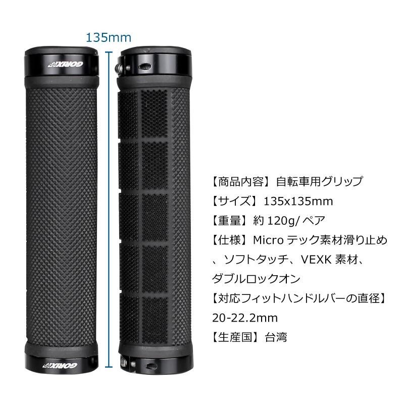 GORIX 自転車グリップ GSR CITY-99 「異なるパターンで快適な操作性と握り心地!」 この自転車 グリップは、シンプルで癖のない丸形デザインが特長です。 握り心地を追求した二重複合素材を採用し、耐久性のあるハードプラスチックと、べたつかず滑らかな質感を持つVEXKラバーを組み合わせています。 表面全体にスクエアカットを施し、優れたグリップ力と衝撃吸収力を発揮。 さらに、指が触れる裏面にはクッション性の高いパターンを採用し、快適な握り心地を実現しました。 マイクロテック素材により滑り止め効果と柔らかいタッチを両立。長さは135cmと標準的で、ストレートフラットハンドルに対応します。 取り付けは簡単なロックオンタイプで、両サイド固定のダブルロックオンタイプなのでしっかり固定できる。 標準的なストレートフラットハンドルに対応しており、クロスバイクやMTB(マウンテンバイク)、折り畳み自転車やスポーツ型電動自転車などのグリップ交換に最適です。 特徴 ●癖のないオーソドックスな丸形グリップ ●素手でも十分なグリップ力を感じられる ●握り心地よい二重複合素材のグリップ/ハードプラスチック、VEXKラバープラスチッククランプ ●ゴムのような質感なのにべたつかない素材のvexkラバー ●全体にはスクエアカットグリップ力あり ●グリップ裏面の指にかかる部分にはクッション性の良いパターンを採用 ●マイクロテック素材は高いグリップ力と滑り止め、ソフトなタッチが特徴的 ●グリップの長さ135cm ●取付しやすい(両側)ロックオンタイプで固定力も高い ●標準的なストレートフラットハンドルに対応し様々なタイプの自転車に 【vexkラバー素材】 採用されている「vexkラバー」は、ゴムのような柔らかい質感を持ちながら、手にべたつきが残らないのが特徴です。 長時間使用しても手が不快にならず、快適なライドをサポートします。 【丸グリップ】 オーソドックスな丸形グリップは身近で馴染のある癖のない筒状形状。 手全体でしっかり握れる事ができるのでダイレクトで細かい操作性は抜群です。 エルゴタイプが苦手な方にもおすすめです。 【高いグリップ力】 指にかかるグリップ裏面には、吸盤のようなパターンを持つ「マイクロテック素材」を使用しており、クッション性が良く非常に高いグリップ力を発揮します。 滑り止め効果も抜群で、手が汗ばんでもしっかりとした安定感を提供します。 また高いグリップ力だけでなく「ソフトなタッチも魅力」で、握り心地の良さと疲労軽減を両立しています。 【滑り止め】 グリップ全体にはスクエアカットパターンを採用。 ダイヤモンドのようにカットされたパターンは滑りを抑えグリップ力と粘着性を高めます。 【ロックオンタイプ】 グリップは取り付けが簡単な「ロックオンタイプ」を採用しており、工具を使ったグリップ交換作業もスムーズに行えます。 初心者から上級者まで安心して扱えます。 また両側をネジ固定するタイプでさらに高い固定力を得られます。 【様々な自転車に対応】 このグリップは標準的なストレートフラットハンドルに対応しており、クロスバイクやマウンテンバイク(MTB)に最適です。 長さも135mmと一般的な仕様のため、幅広い自転車でお使いいただけます。 【商品内容】自転車用グリップ 【サイズ】135x135mm 【重量】約120g/ペア 【仕様】Microテック素材滑り止め、ソフトタッチ、VEXK素材、ダブルロックオン 【対応フィットハンドルバーの直径】20-22.2mm 【生産国】台湾 商品は入荷によりキズがある場合があります。 傷や細かい汚れが気になる方や神経質な方は入札をお控え下さい。 入荷時期により予告無く一部仕様変更する場合が有ります。 カラーはディスプレイ種類環境等により実物と異なって見える場合がございます。 |