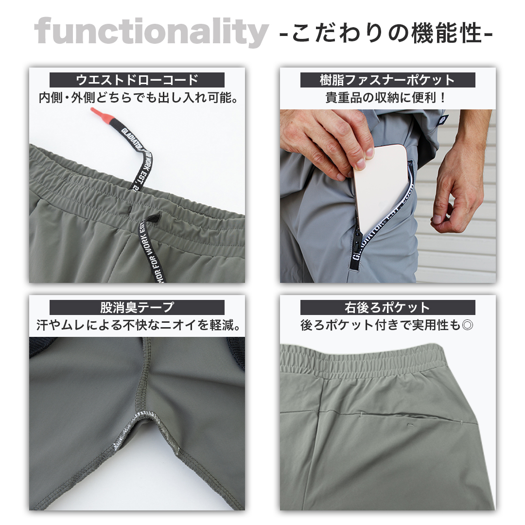 吸水 吸汗 速乾 UVカット 紫外線カット UPF50+ ファスナーポケット 後ろポケット 吸水速乾 UVカット 紫外線カット ストレッチ 動きやすい スポーツ ツーリング ゴルフ 普段着 ジョギング 作業 すぐ乾く 夏 快適 畑仕事 農作業 涼しい 仕事 冷感 冷たい 涼しい さらさら サラサラ 介護 トレーニング Q-MAX 最大熱吸収速度 ひんやり メンズ レディース ユニセックス 黒 カーキ グレー