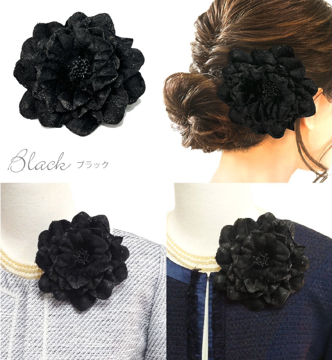 | どこかアンティーク感の漂う上品さがオシャレなコサージュ グラデーションがかったベロア素材の花びらは、フチにさり気なくラメが乗り 中央部分は丸みのある可愛らしい花芯をあしらいました。 美しい光沢感とクラシックな雰囲気が大人っぽく、胸元に華やかさを演出します。 装着部分は安全ピンとくちばし状クリップの便利な2way仕様です。 しっかりと存在感のある約11cmの大きめサイズです。 卒業式・入学式のスーツ、結婚式やパーティーの装いだけでなく スカーフやバッグにつけてアレンジしたり、まとめ髪のワンポイントにもぴったりです |