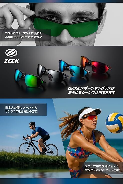 Amazon | ZECK 野球 ゴルフ ランニング スポーツサングラス アジアンフィット 超軽量 ケース&マイクロバック付き ZETA ゼータ 耐衝撃性能 99.9%紫外線カット 撥水コーティング