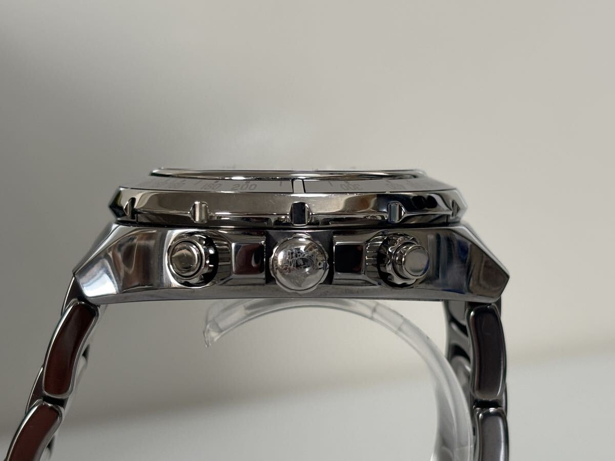 クロノグラフのリセットプッシュボタンが押された状態のままになってます。