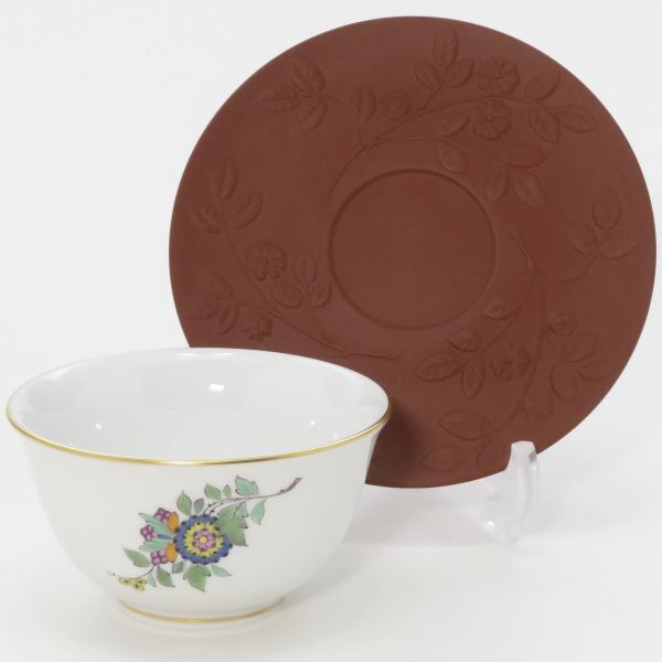 マイセン 柿右衛門様式の花文絵図の茶器セットになります。
