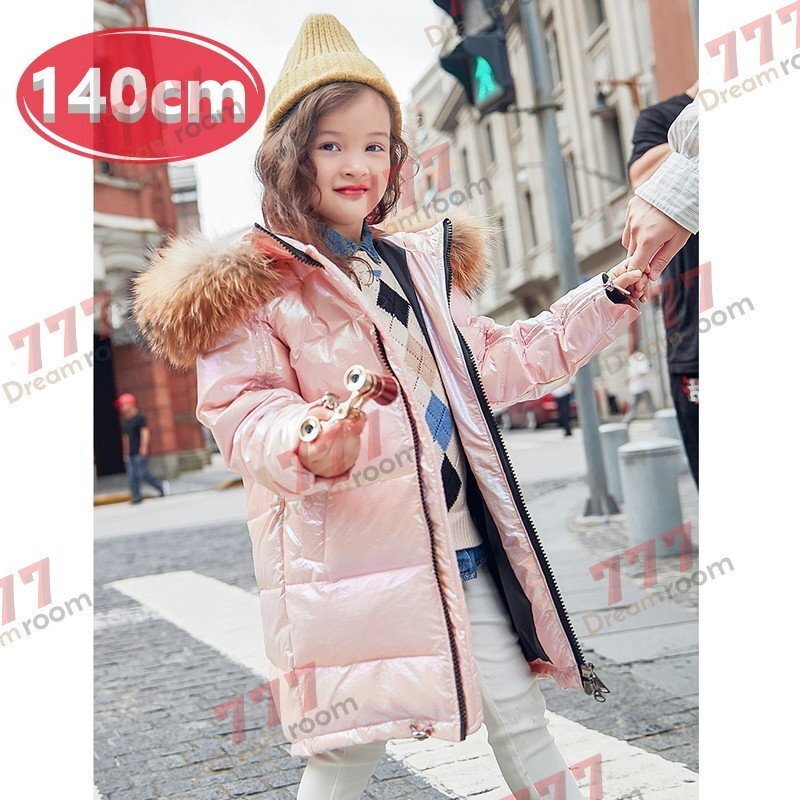 1スタ☆kids シャイニー ダウンコート ロングコート ピンク【140cm】中綿 防水 子供 冬物 冬服 K-303