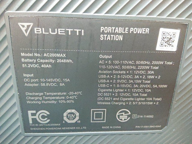 | 商品名 | 【未使用品】 BLUETTI ポータブル電源 AC200MAX | ||||