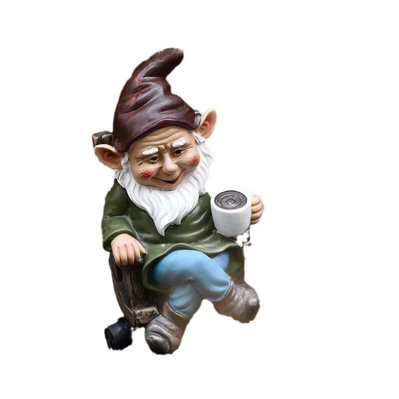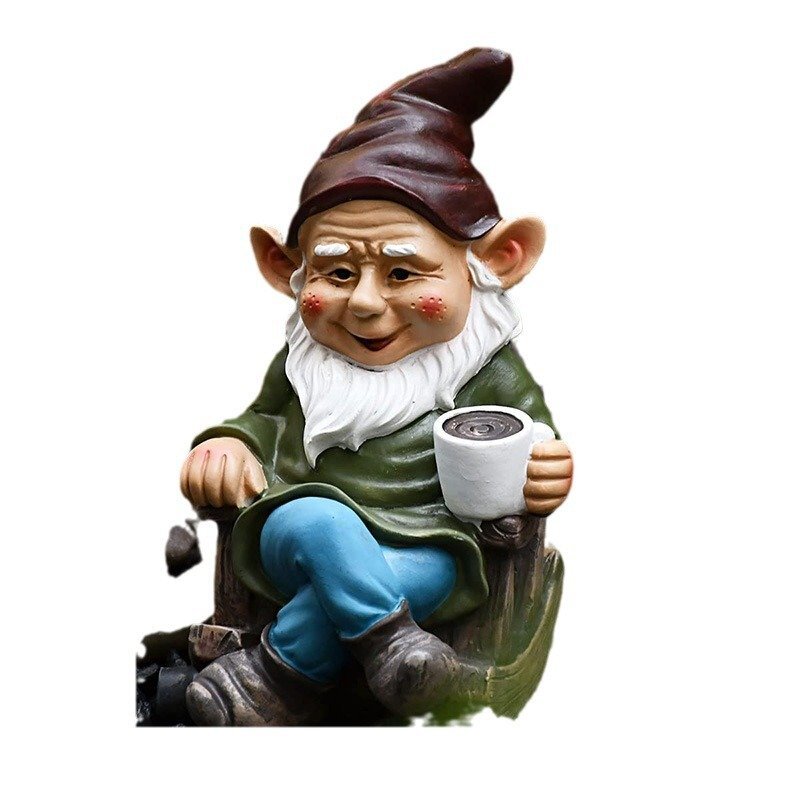 くつろぐ エルフ コーヒー カフェ オーナメント 雑貨 置物 木の飾り 樹脂 園芸 ガーデン オブジェ ファンタジー 小人 n908