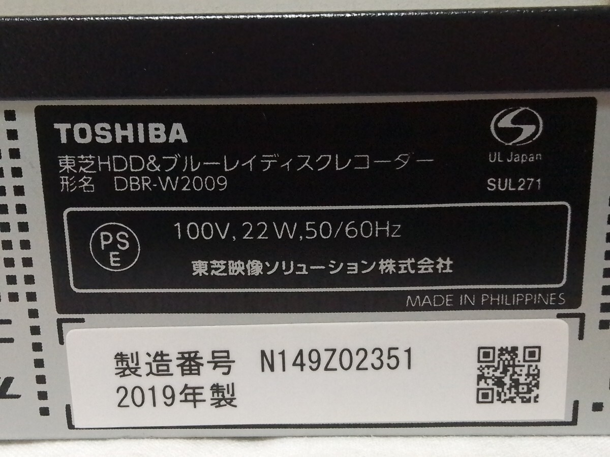 東芝レグザDBR-W2009ブルーレイレコーダー