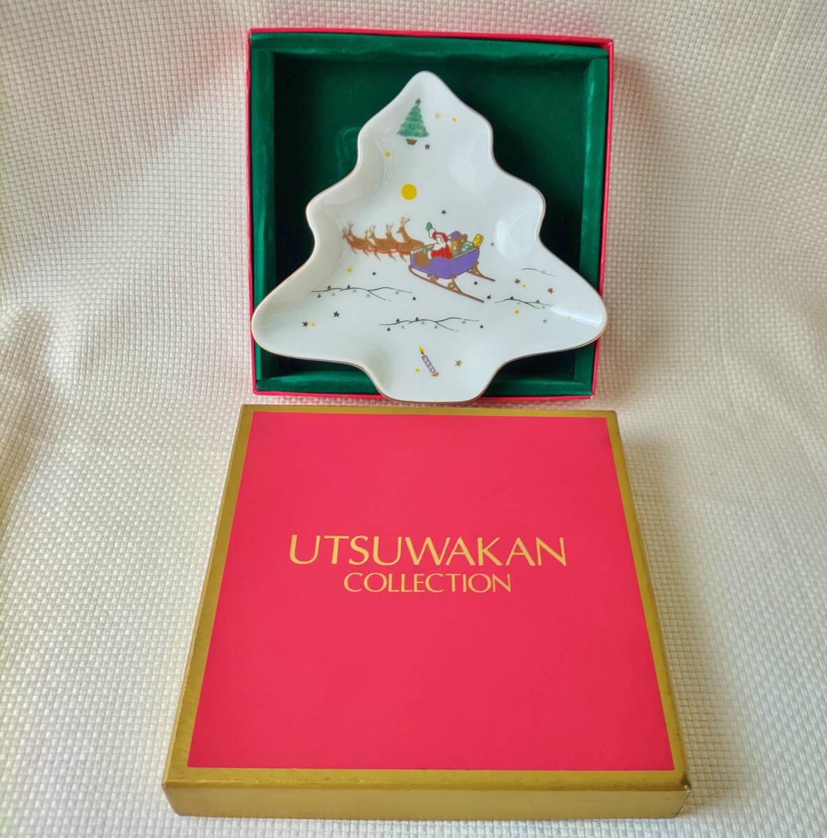 器館 クリスマス ツリー型 トレイ 箱入り/陶器 UTSUWAKAN サンタクロース ツリー 皿 飾り皿 プレイト ソリ コレクション 食器
