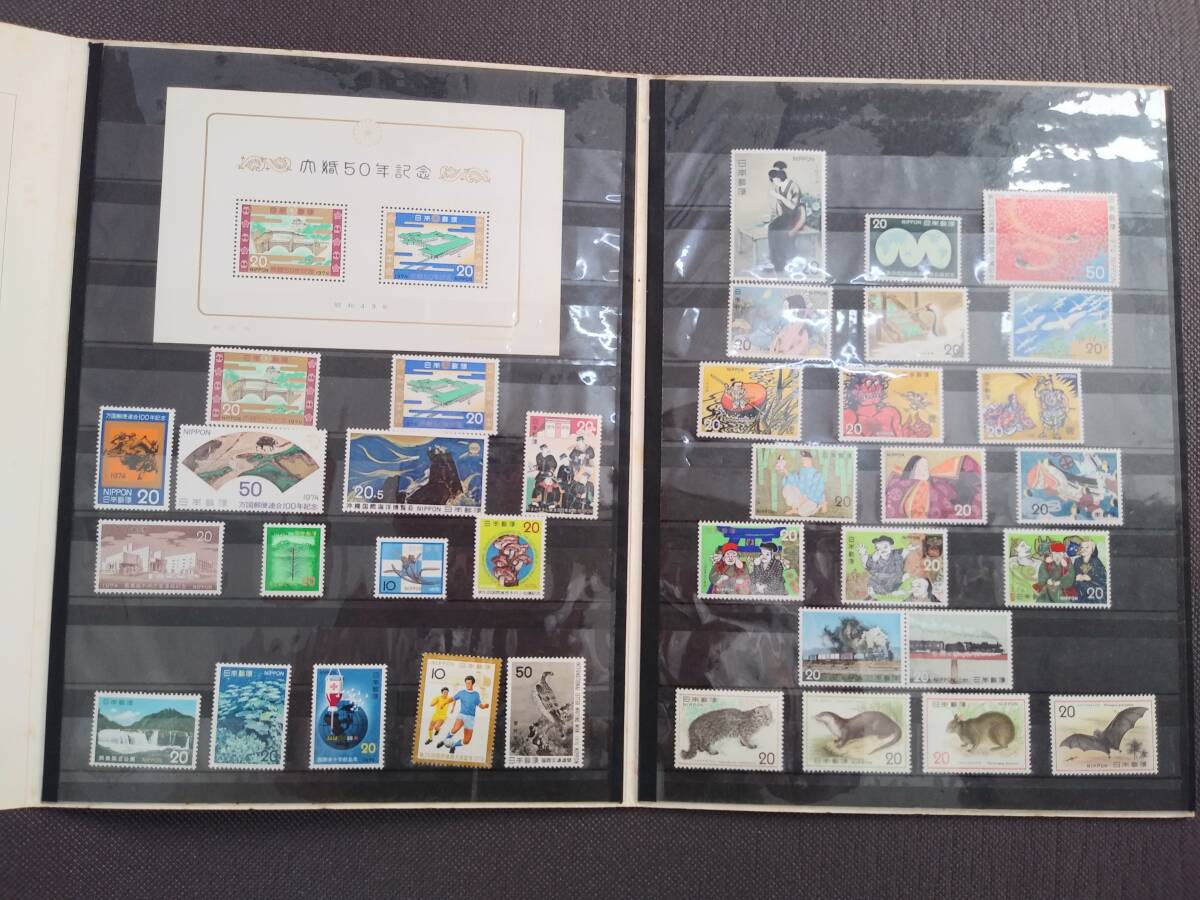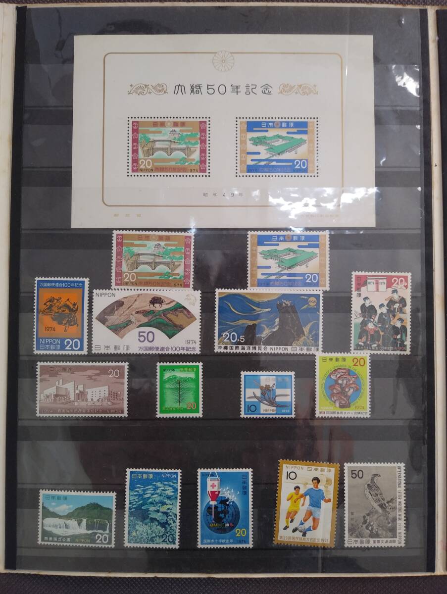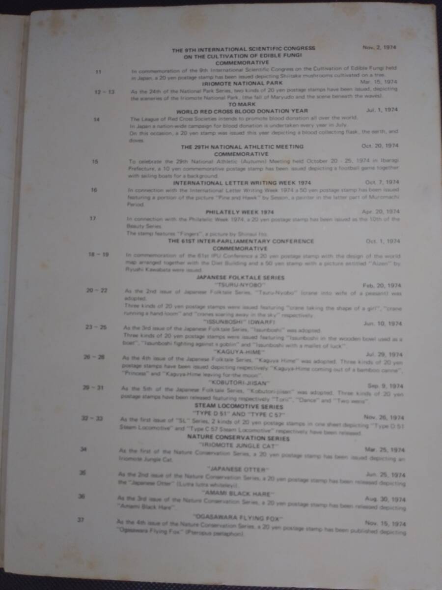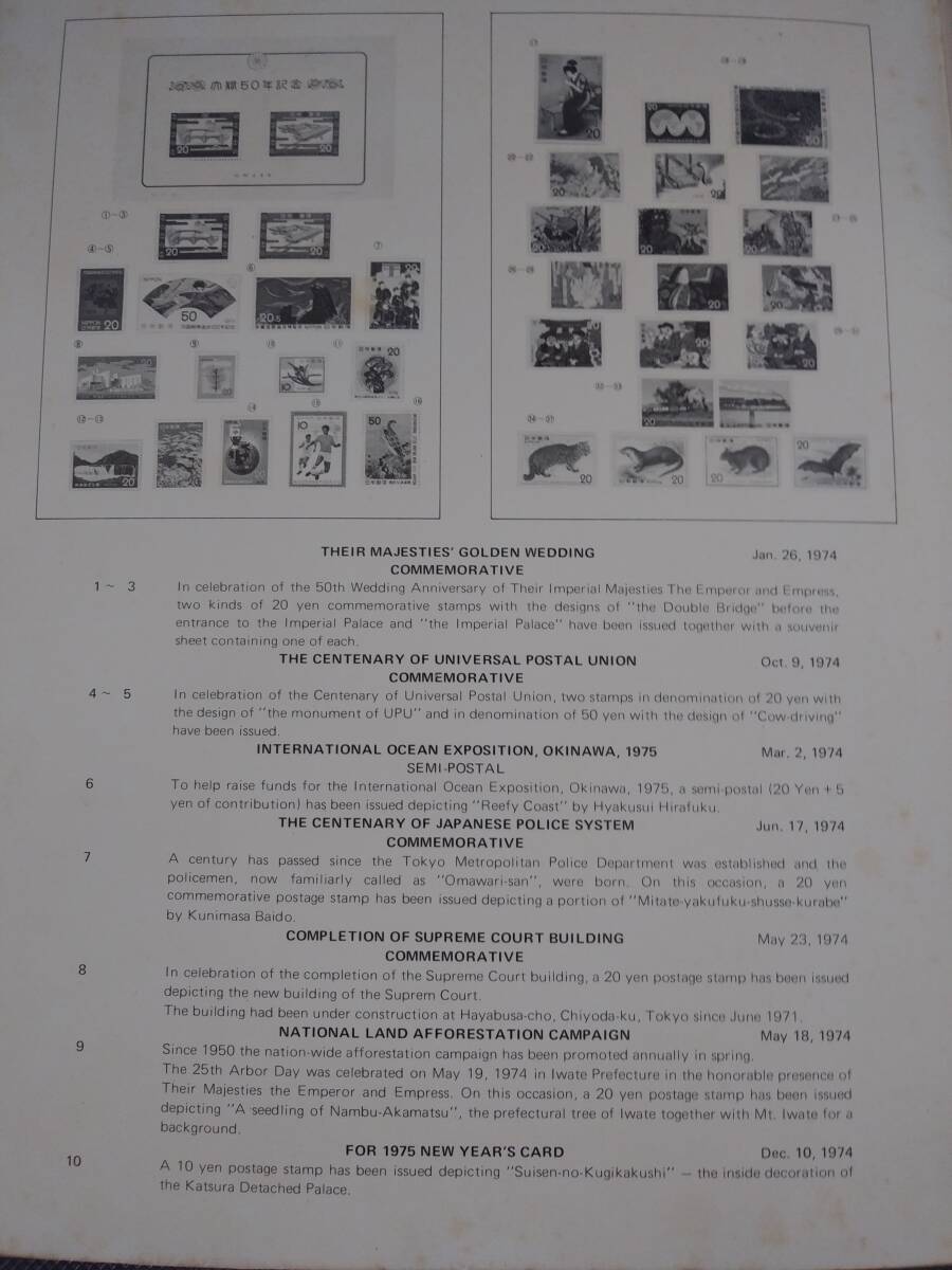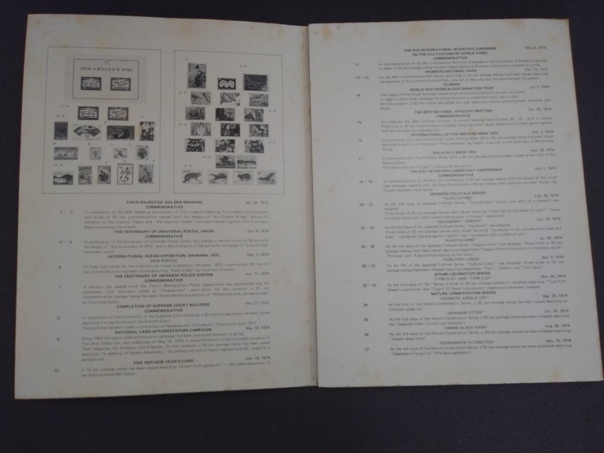 1974年の訪日外国人旅行客向け日本紹介切手アルバムと思います。50年前のものかと思います、表紙は日焼けしており中の解説文のところシミが点在してます、中の切手は大丈夫です。勿論未使用切手となります。