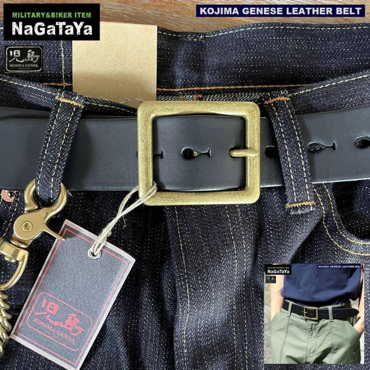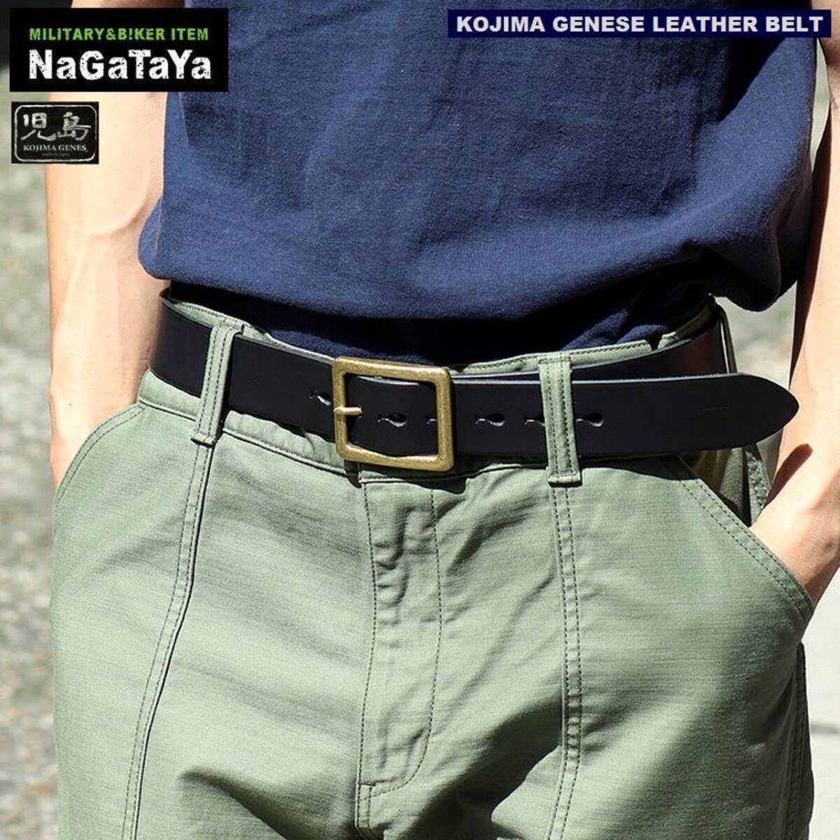 ★ 児島ジーンズ KOJIMA GENES レザーベルト ゴールドバックル 4mm レザー 牛革 フリーサイズ 107cm RNB9049 ★