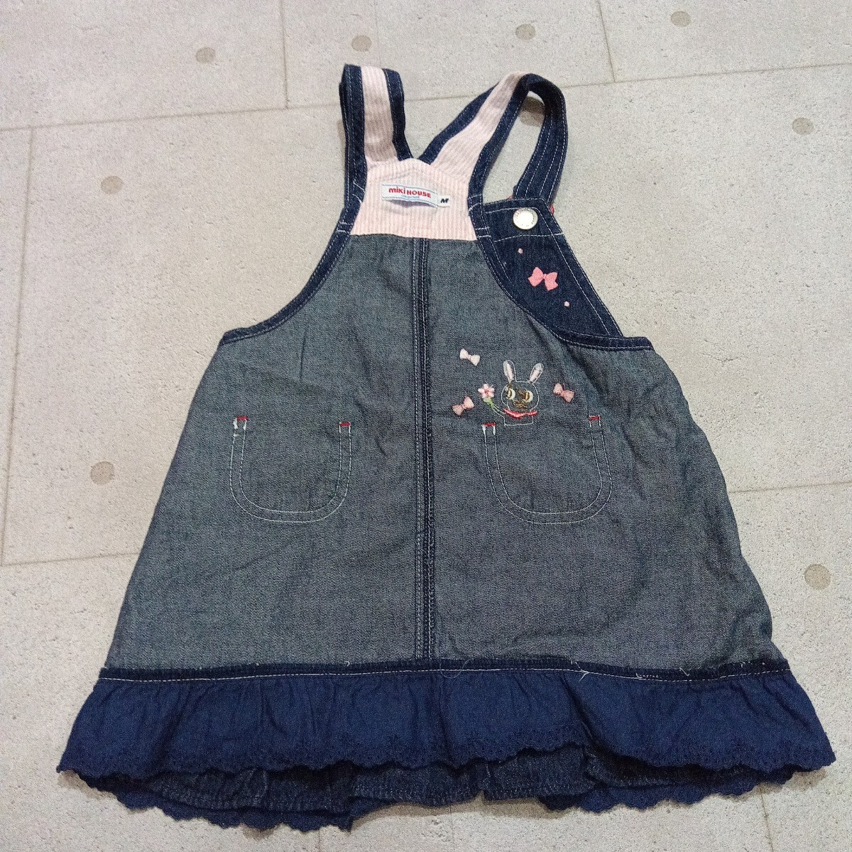 ミキハウス mikihouse キッズ ジュニア 子供服 女の子 デニム ジャンパースカート ワンピース サイズ【M】 うさこ リボン 刺繍