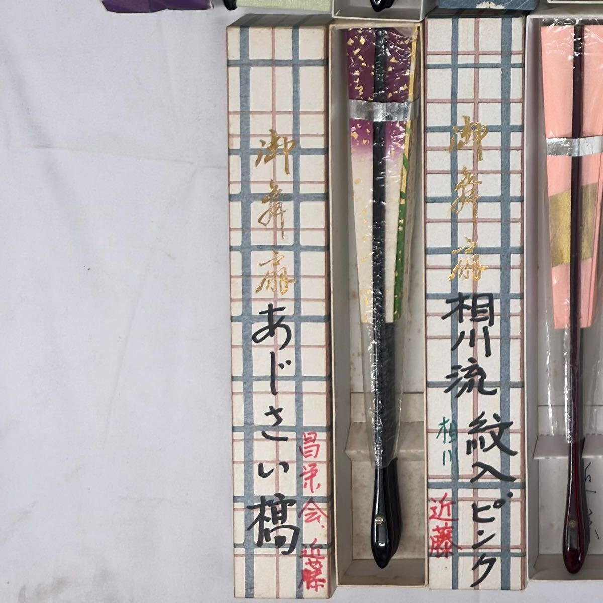 踊り用・舞台用に使いやすい意匠から、和柄・金銀系の華やかなものまで箱入り多数。稽古・発表会・装飾・撮影小物にも。