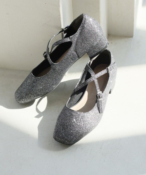 参考商品名:スクエアトゥクロスストラップパンプス