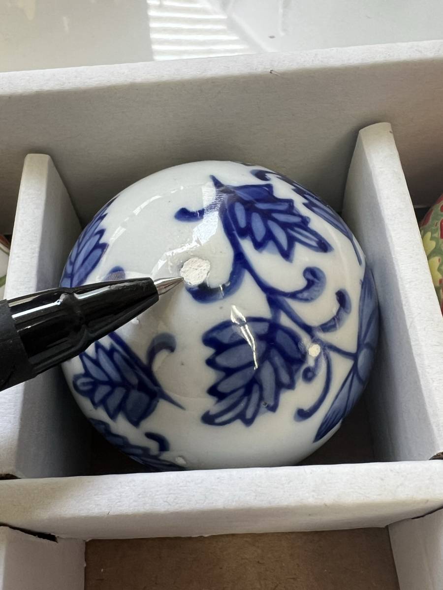 画像にある穴は陶器を焼くときに台の跡です、傷ではありません。