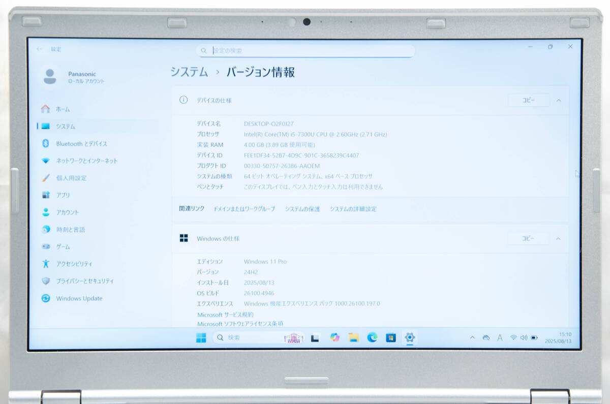 | CPU | Intel Core i5 7300U(Kaby Lake) 2.60GHz 第7世代2コア4スレッド高性能CPU!! | |