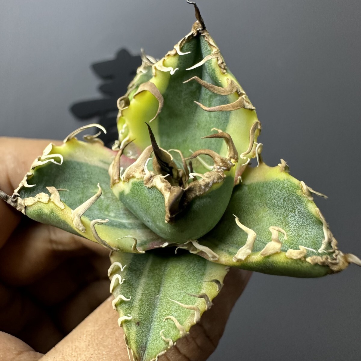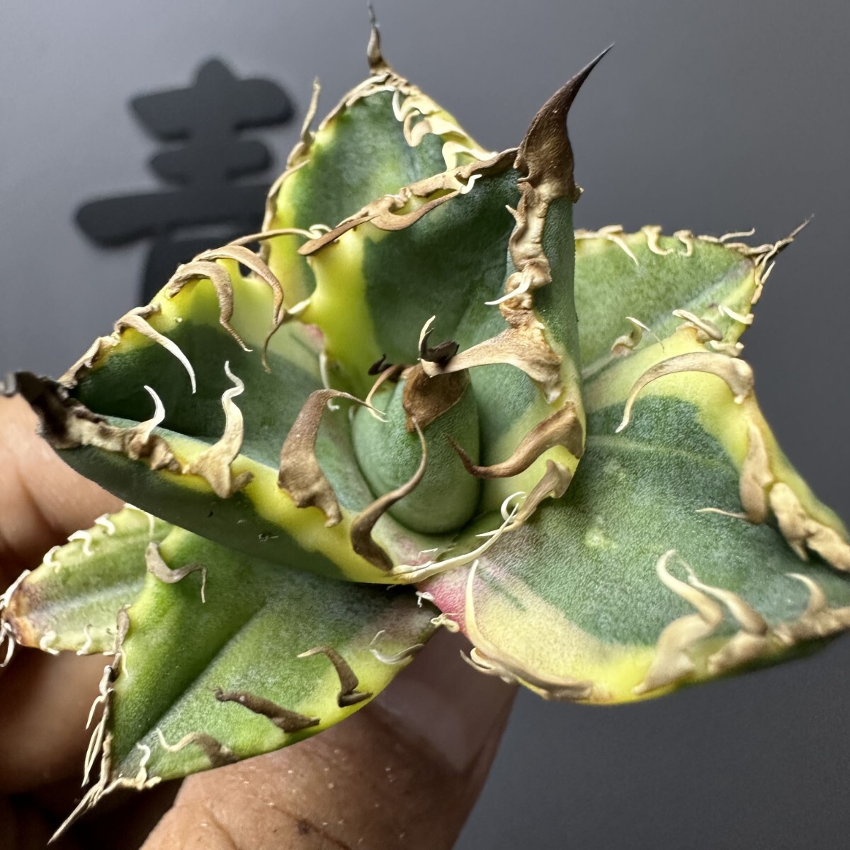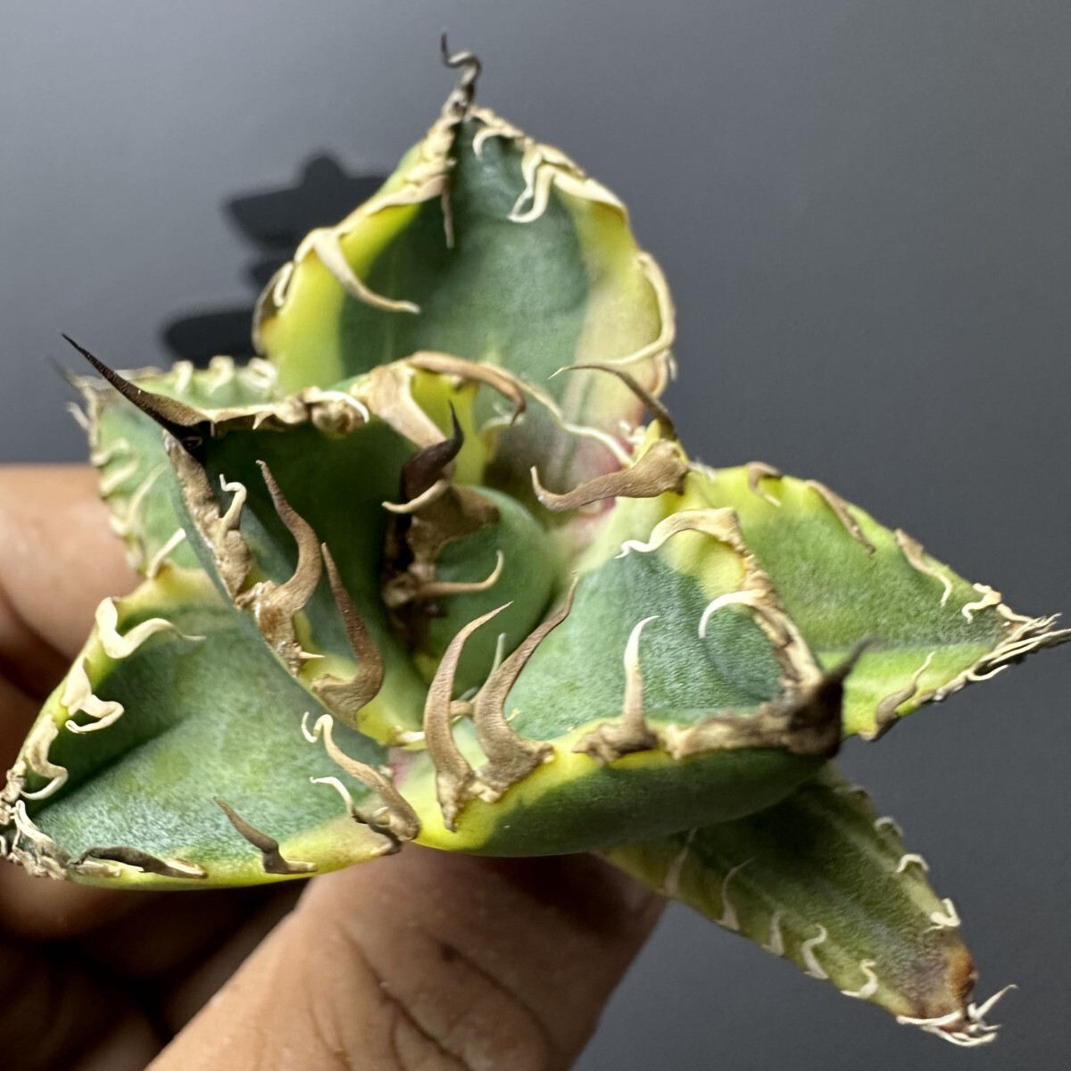 AO43【青田園芸】特選 アガベ 多肉植物 チタノタ凱撒錦‘SUPER CAESAR’ シーザー 覆輪斑(永久斑) 超絶狂棘 極上株