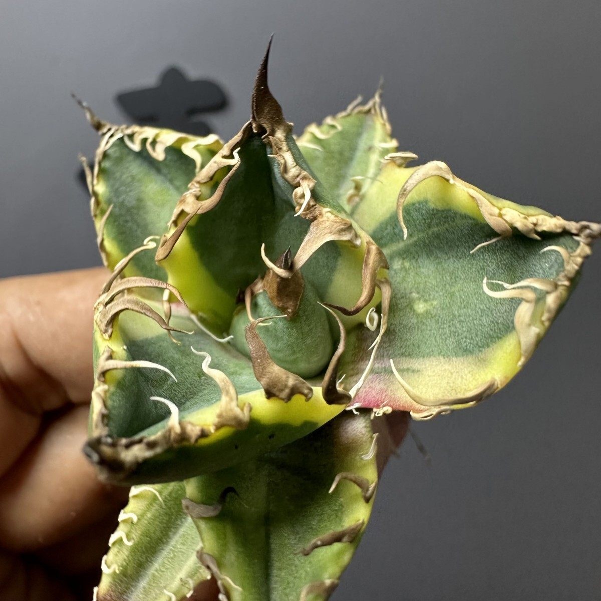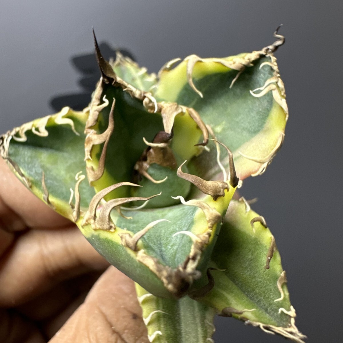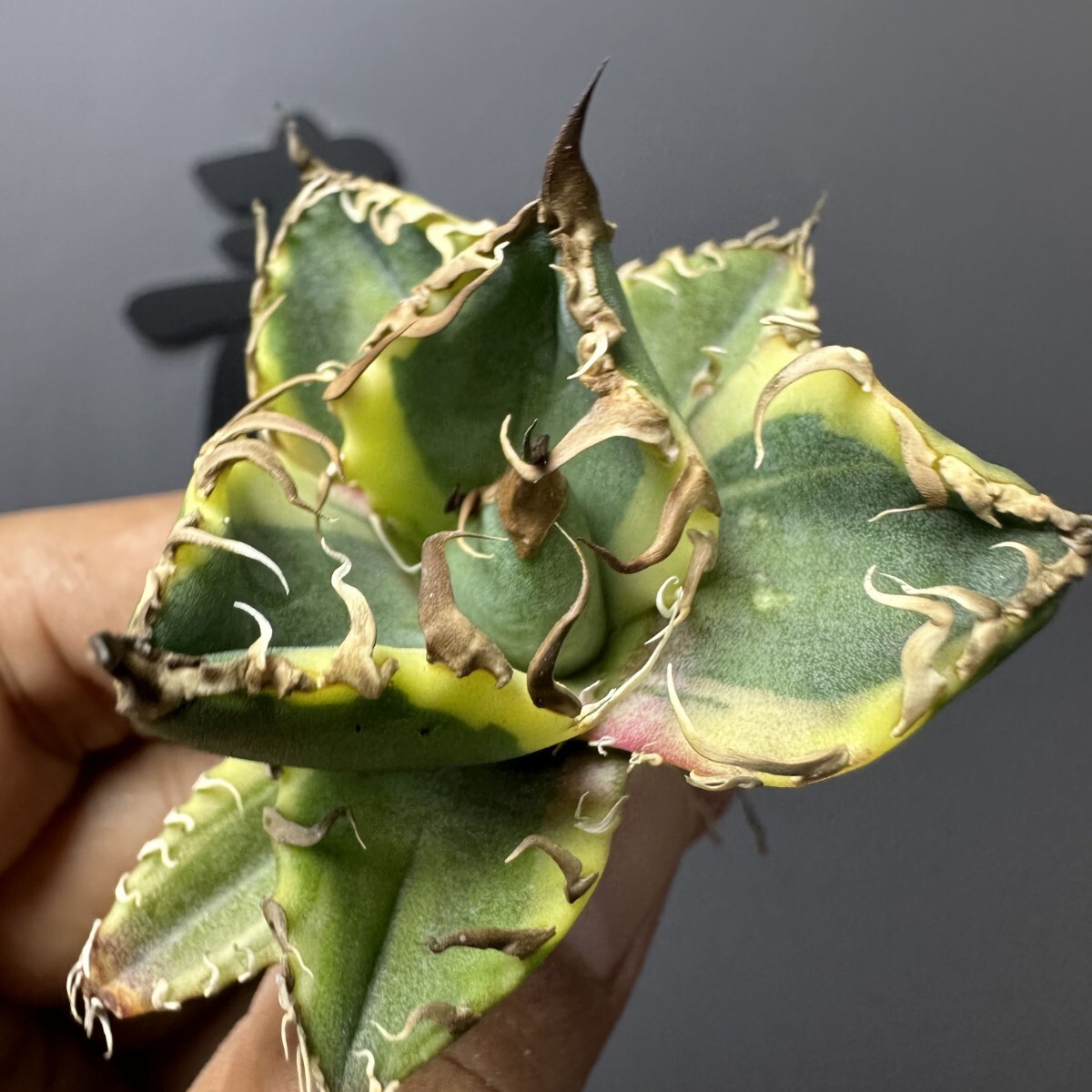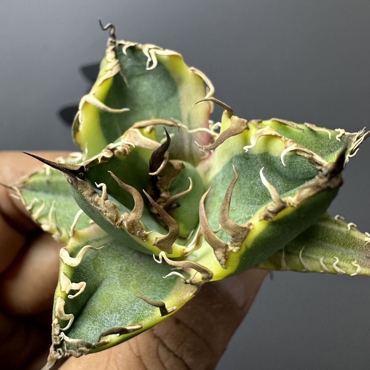 AO43【青田園芸】特選 アガベ 多肉植物 チタノタ凱撒錦‘SUPER CAESAR’ シーザー 覆輪斑(永久斑) 超絶狂棘 極上株