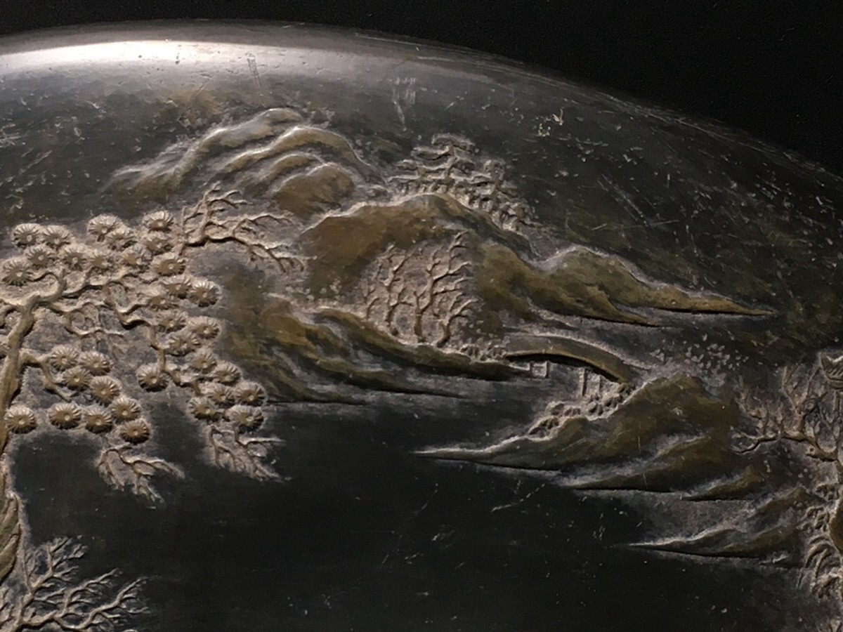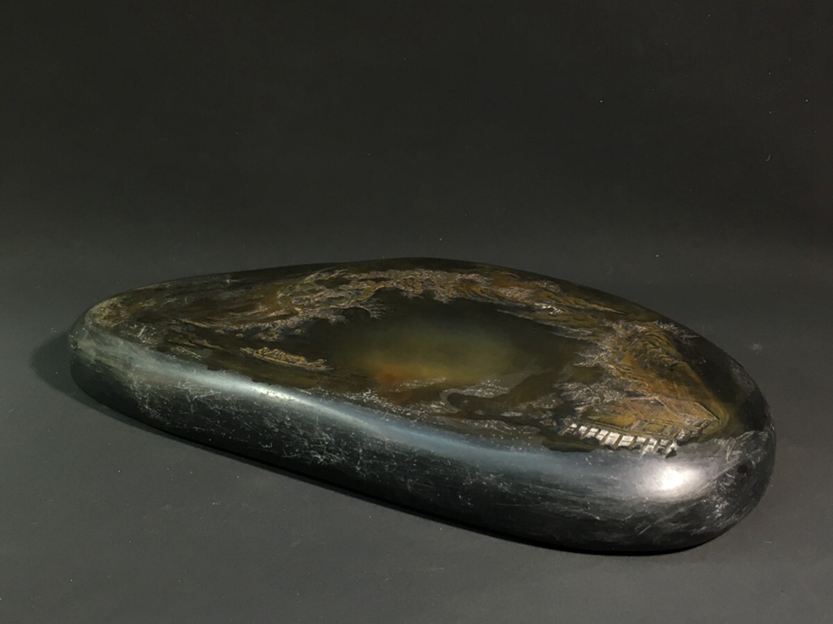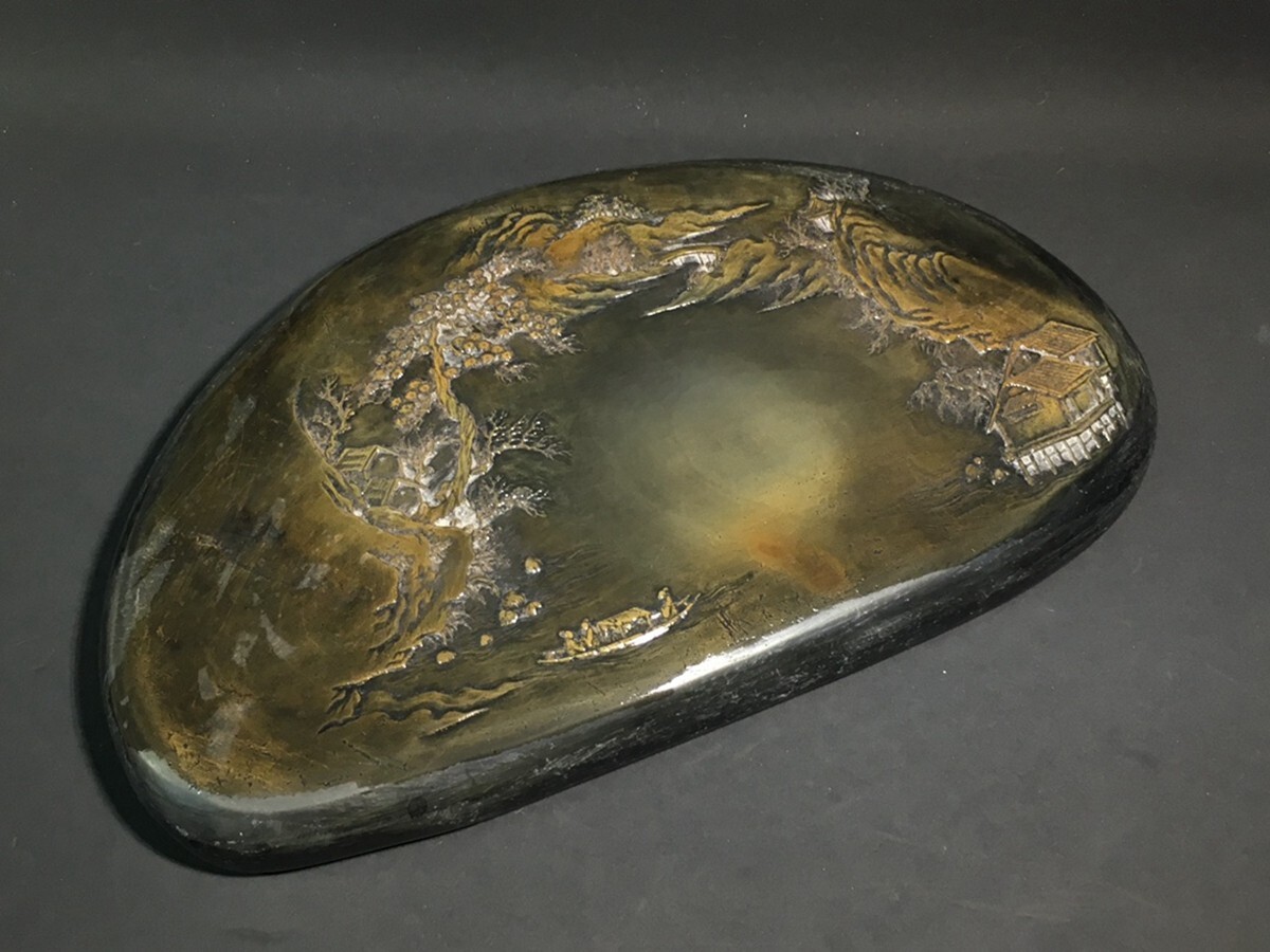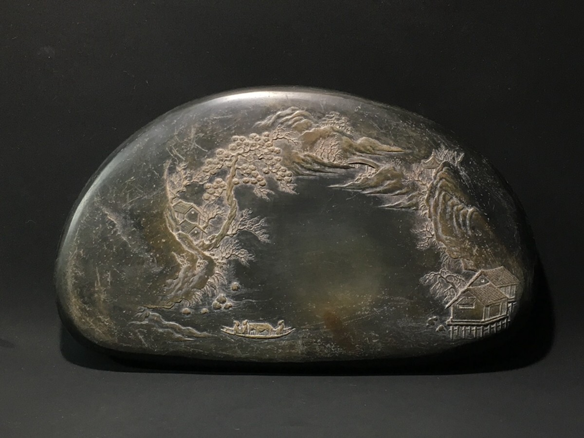「老坑金暈歙石硯 湖畔泛舟文房歙硯 林則徐銘 清時代」手彫り 文房四宝 書道具 中国古美術 旧蔵出